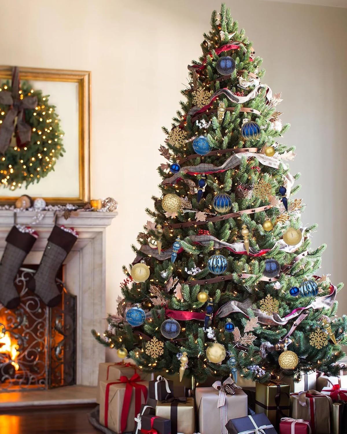 - COMPLETE 92-PIECE SET β Each Christmas ornament set includes 92 carefully selected pieces in various sizes and designs, including classic round balls, intricate finials, glittery snowflakes, and mini baubles. This complete collection allows you to decorate your entire Christmas tree with a perfectly coordinated look