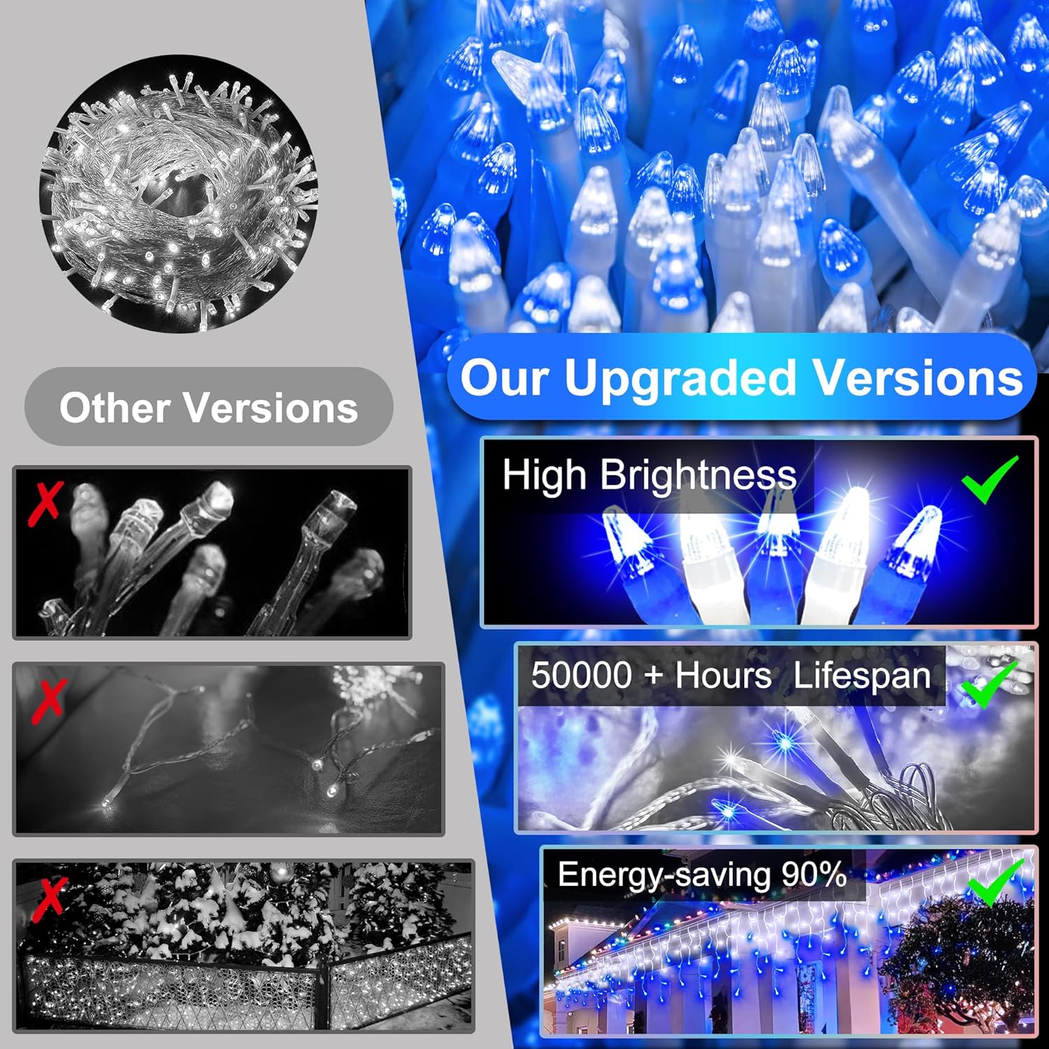 - Unleash Holiday Magic: Illuminate every corner with our stunning 1620 LED icicle lights! Stretching 164 feet and featuring 366 enchanting drops, they create a dazzling display with their diamond-shaped lenses. Cover your whole house with just one set—no need for extra strings. Perfect for rooftops, fences, and trees, these lights turn your space into a festive wonderland. Spread joy and warmth with a magical touch that makes every holiday gathering truly unforgettable