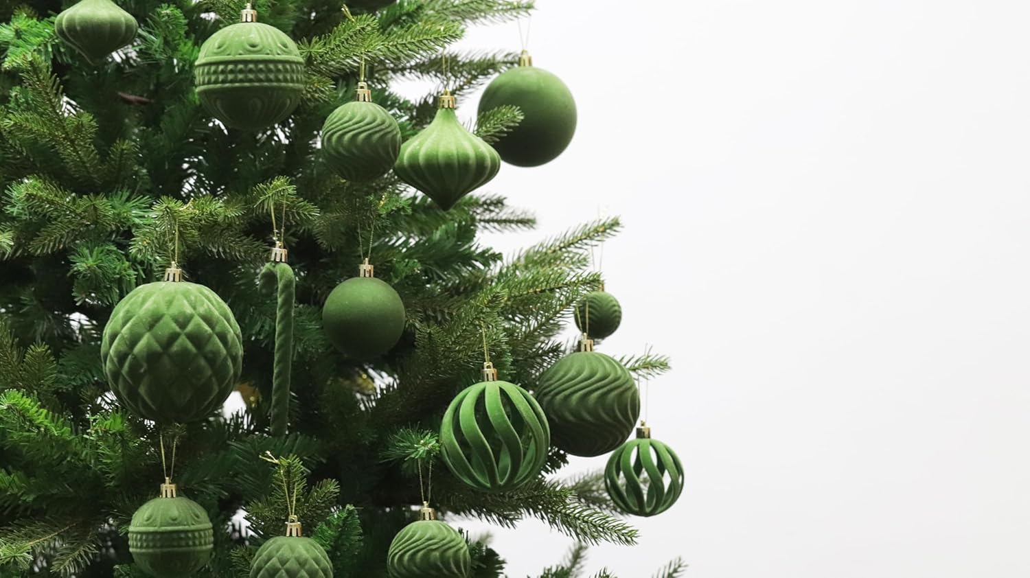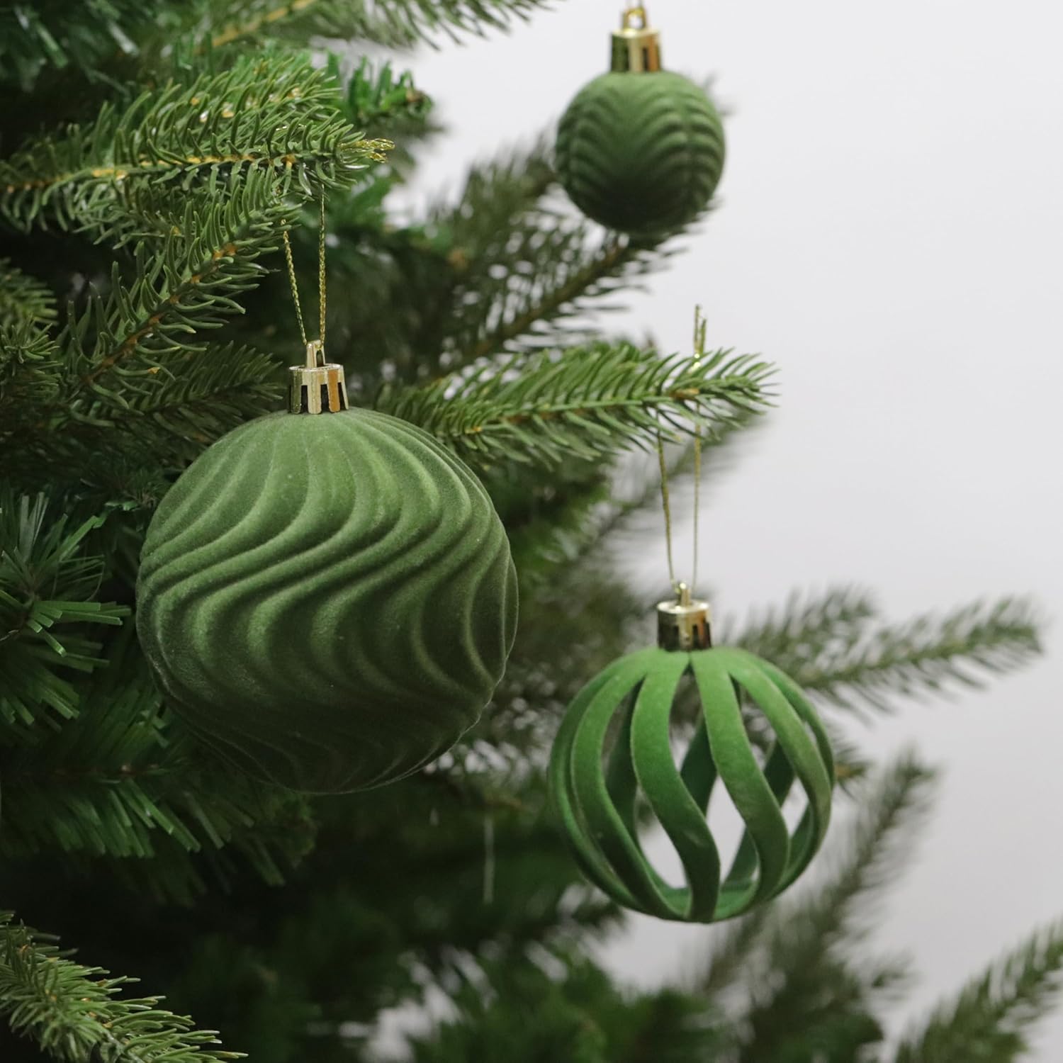 Senjie 2025 Velvet Christmas Ornaments Sets for Christmas,63pcs Xmas Tree Bulk Flocked Shatterproof Christmas Ornaments Balls Decoration Avocado Green