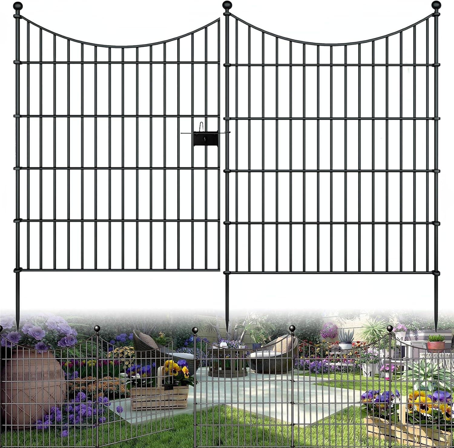 - 【Secure and Sturdy Construction】Rest assured with our Metal Fencing's robust construction. Built with metal and spear-top pickets, it forms a formidable barrier against intruders and withstands harsh weather conditions, ensuring year-round protection for your garden sanctuary