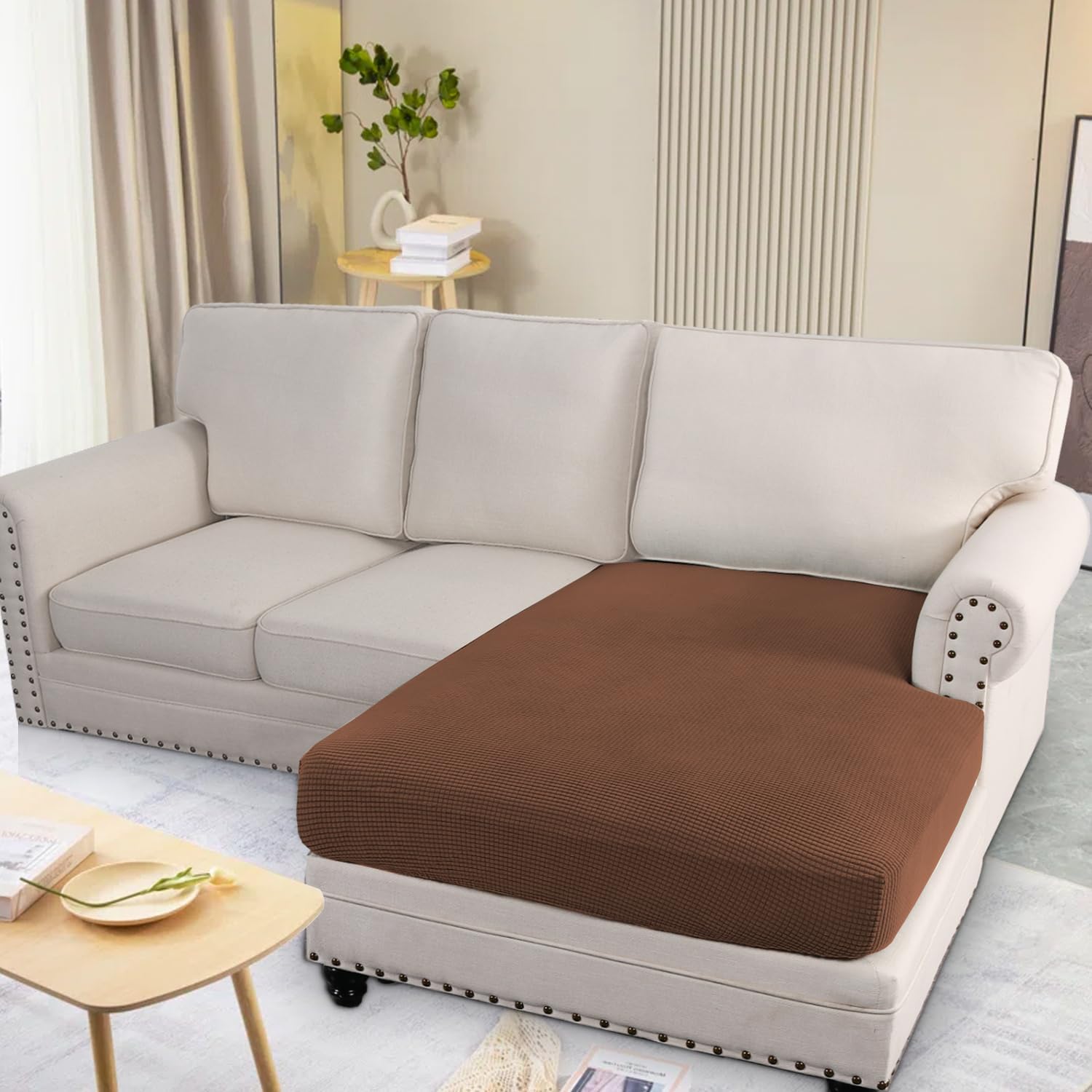 H.VERSAILTEX Super Stretch Individual Chaise Cover Sectional Couch Covers for L Shaped Sofa Both Left/Right Featuring Thick Jacquard Textured Twill Fabric (1 Piece Chaise Cover, Caramel)