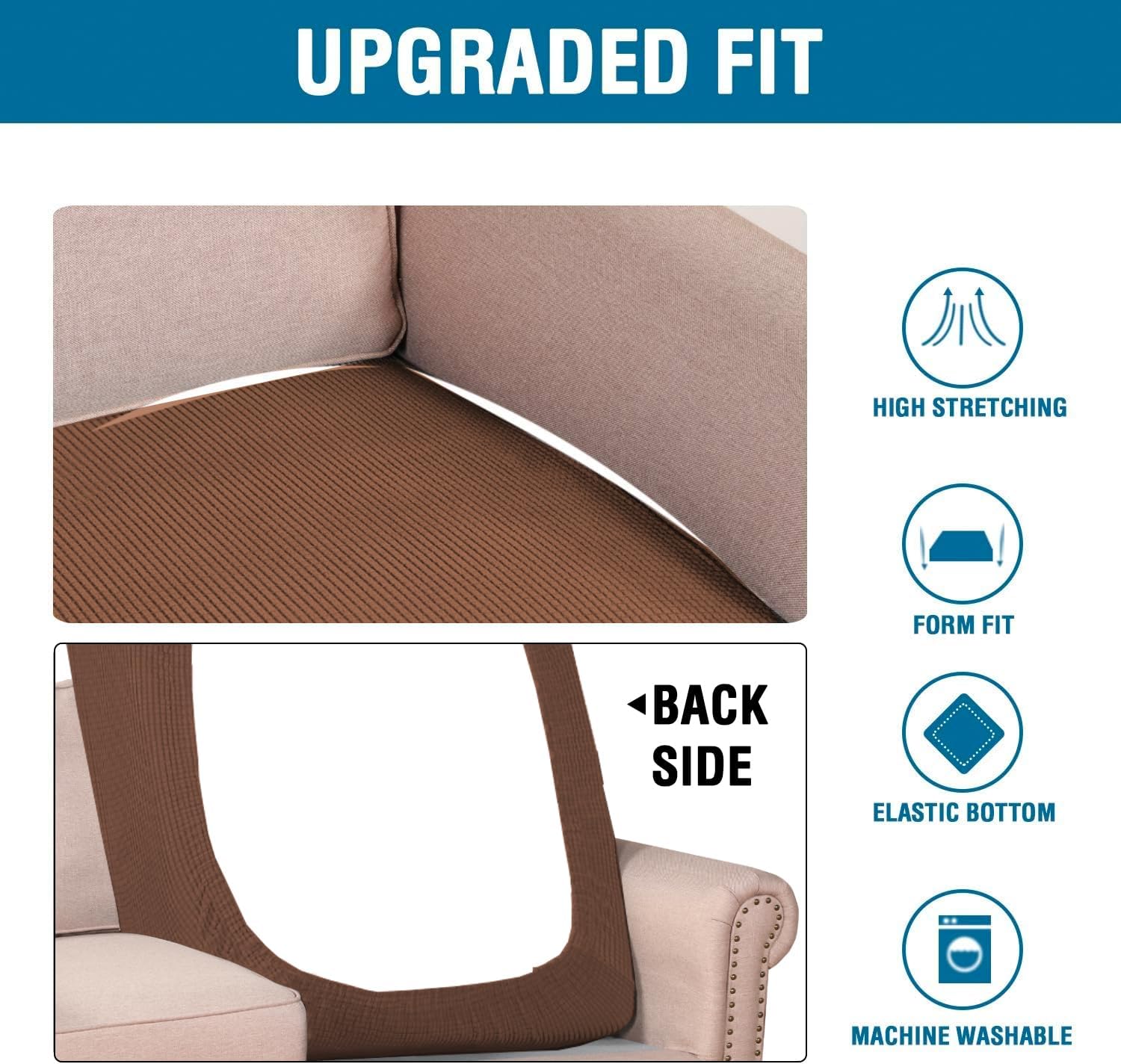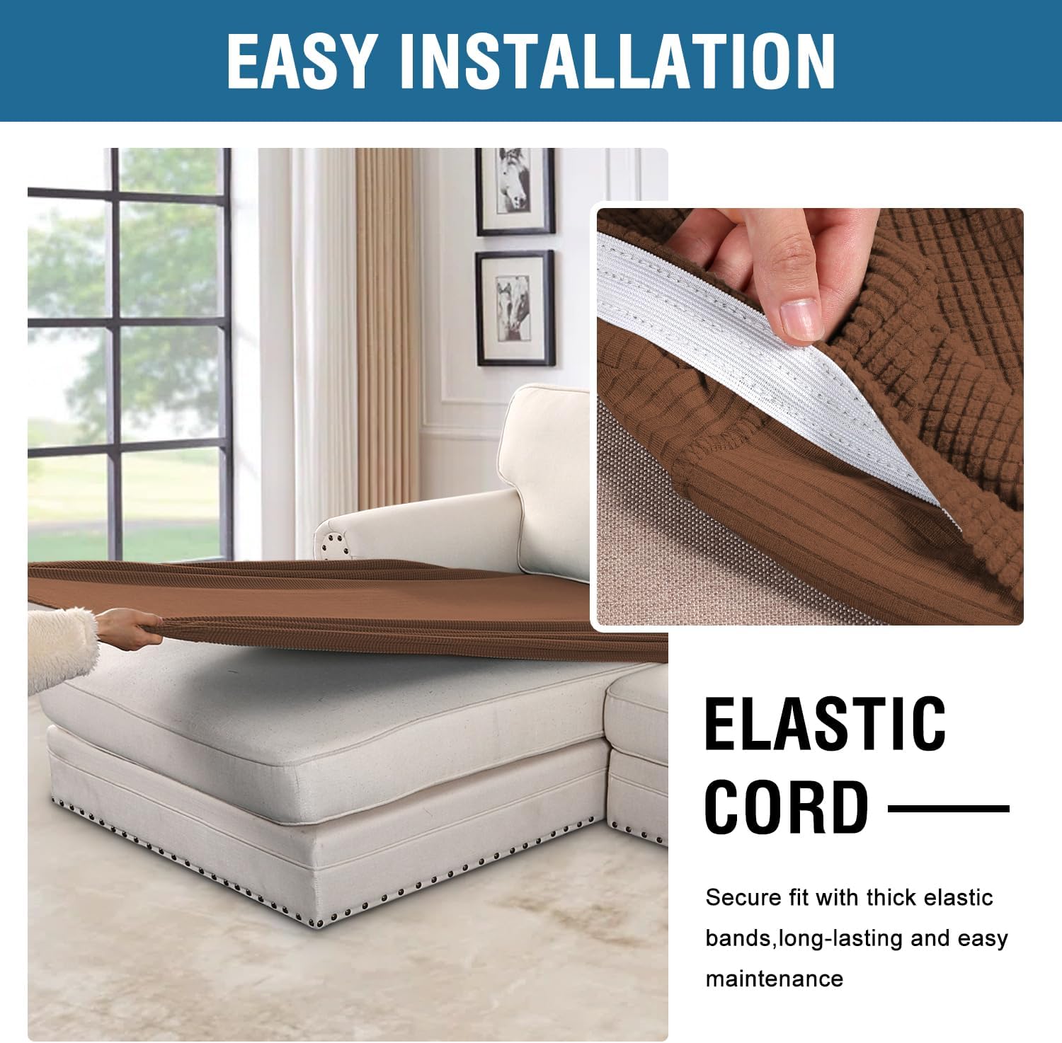 - NON SLIP: Effortless for installation (guide photos on selling page), sewn with thick elastic loops to cover the bottom edges. It is easy to install and take off, making your home more harmony, high recommended for both leather and cloth furniture