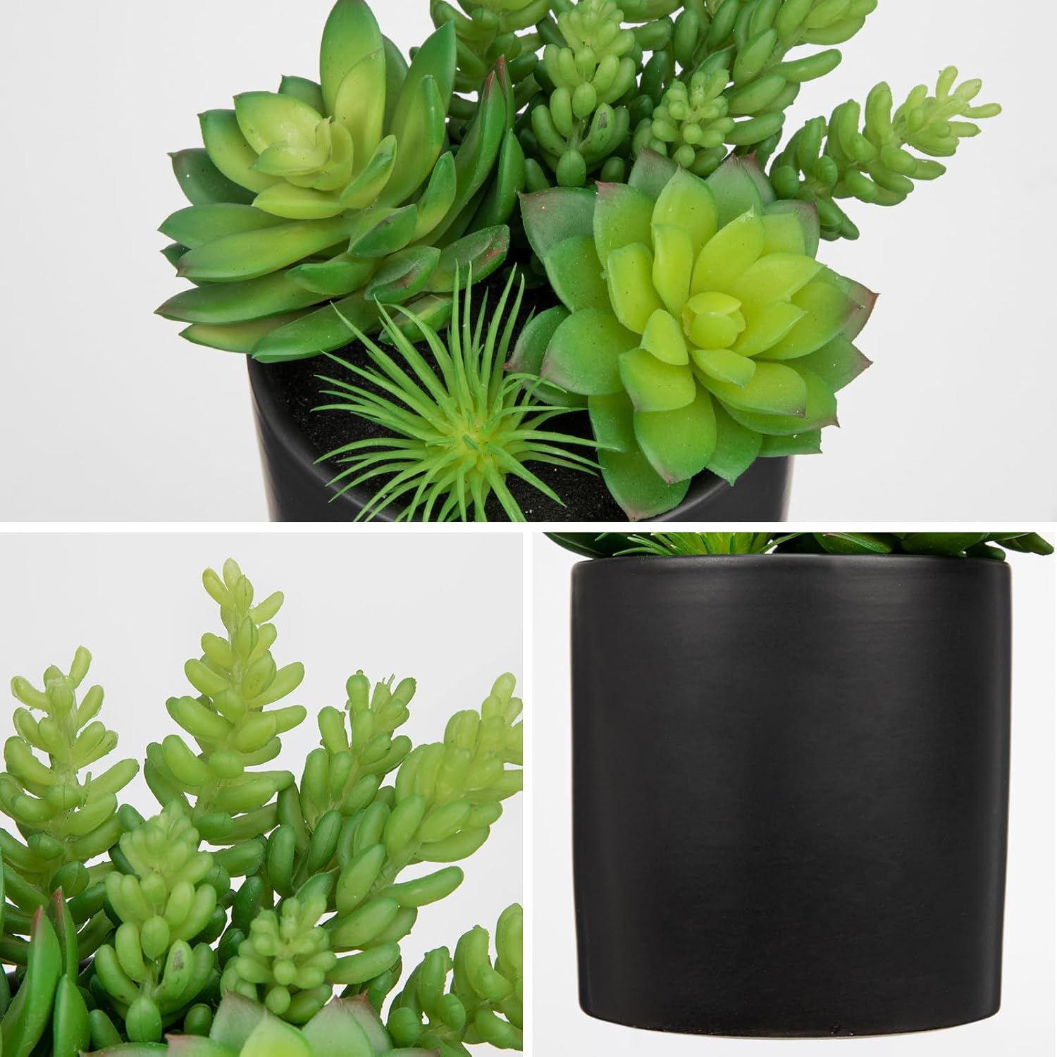 - 【HIGH QUALITY POTTED SUCCULENT】Black Each realistic fake plants are made of eco-friendly PE and ceramic vase. Each fake succulents in pots is solid and great textured in touch that is more lifelike naturalistic than others in the market. Large plants "Hollyone" brand assurance is worthy of your trust.