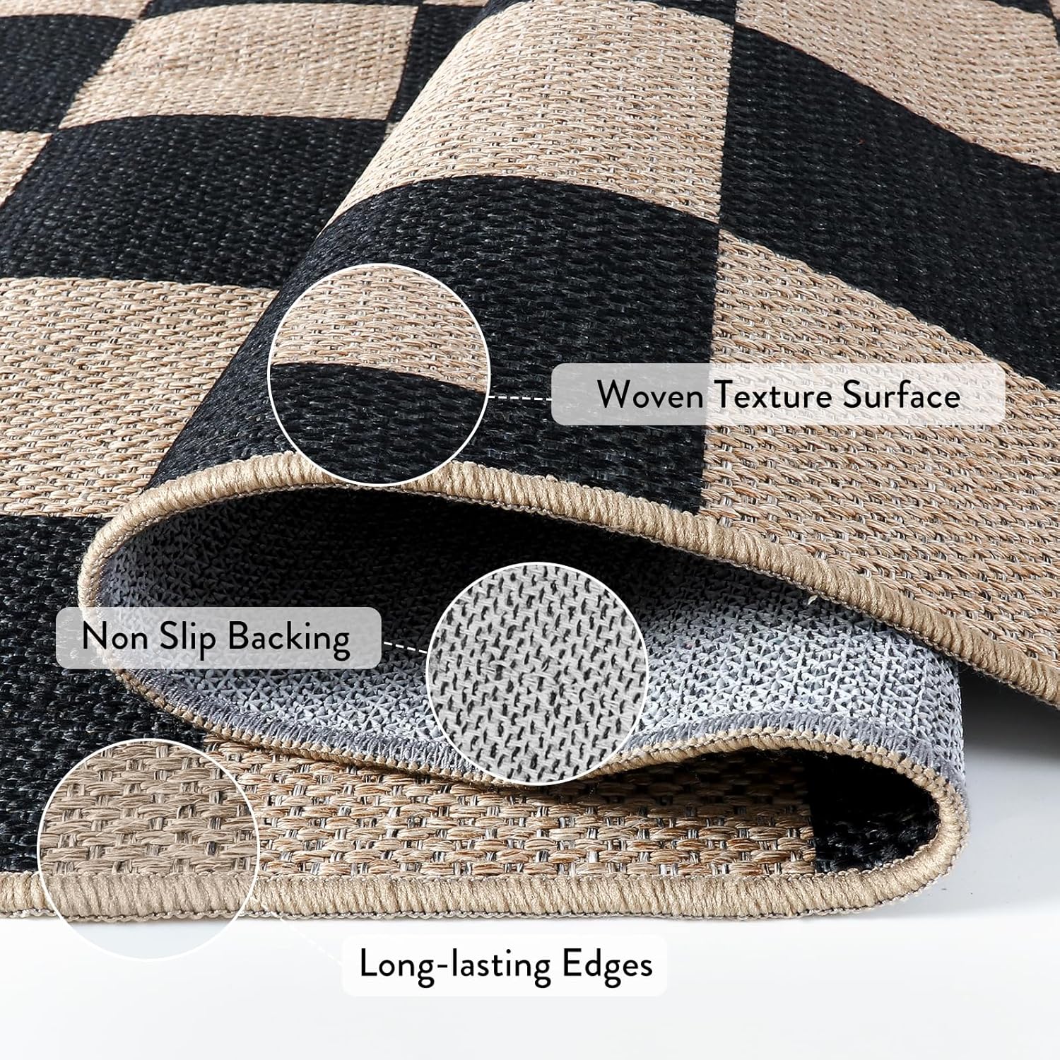 Lahome Checkered Easy Jute Runner Rug, 2x6 Kitchen Runner Rug Non Slip Washable Outdoor Carpet for Entryway Indoor, Checkerboard Black Indoor Outdoor Carpet Runners for Hallway 6ft Entry