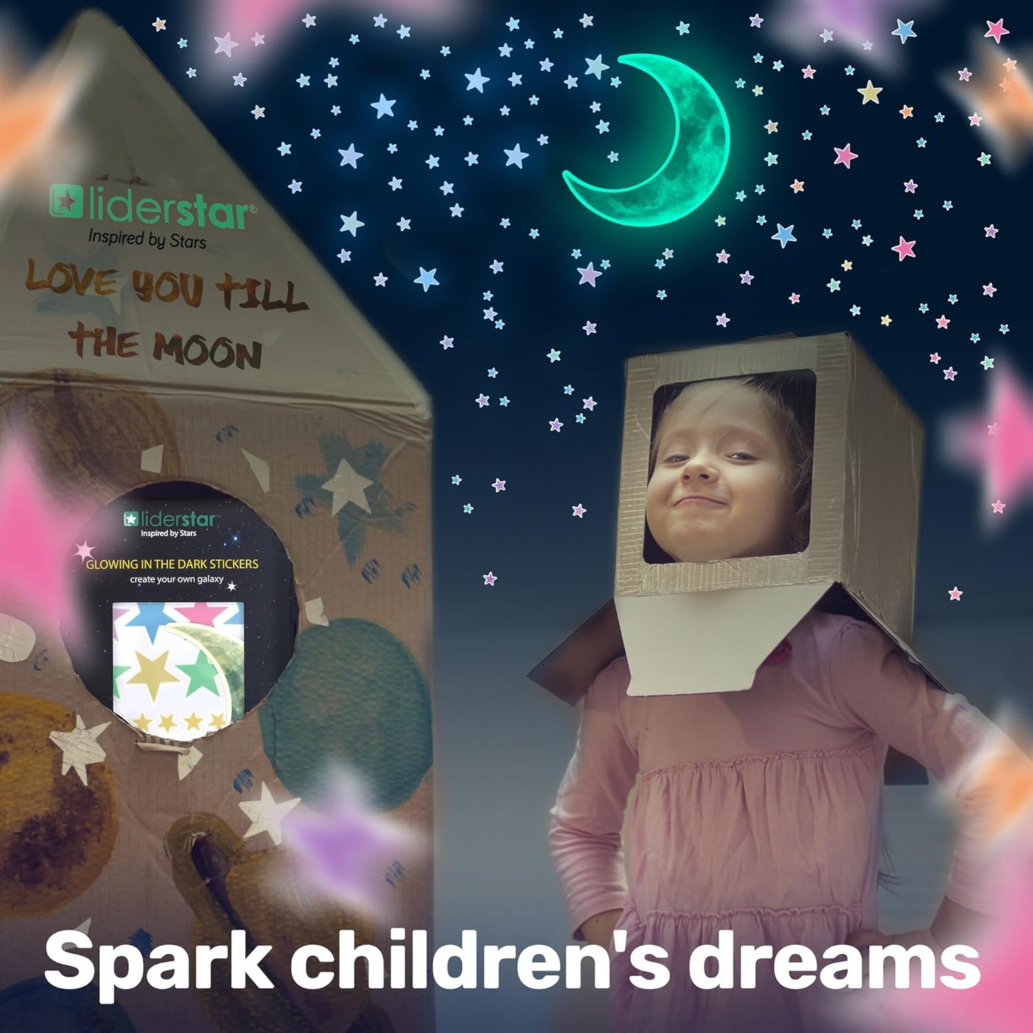 - A GIFT THAT’S OUT OF THIS WORLD – Looking for an extraordinary gift? Liderstar’s glowing stars kit is perfect for any occasion. With 201 mixed color stars, a crescent moon, and a free affirmation card, it fosters bonds and arrives in a unique package, ideal for stargazers of all ages.