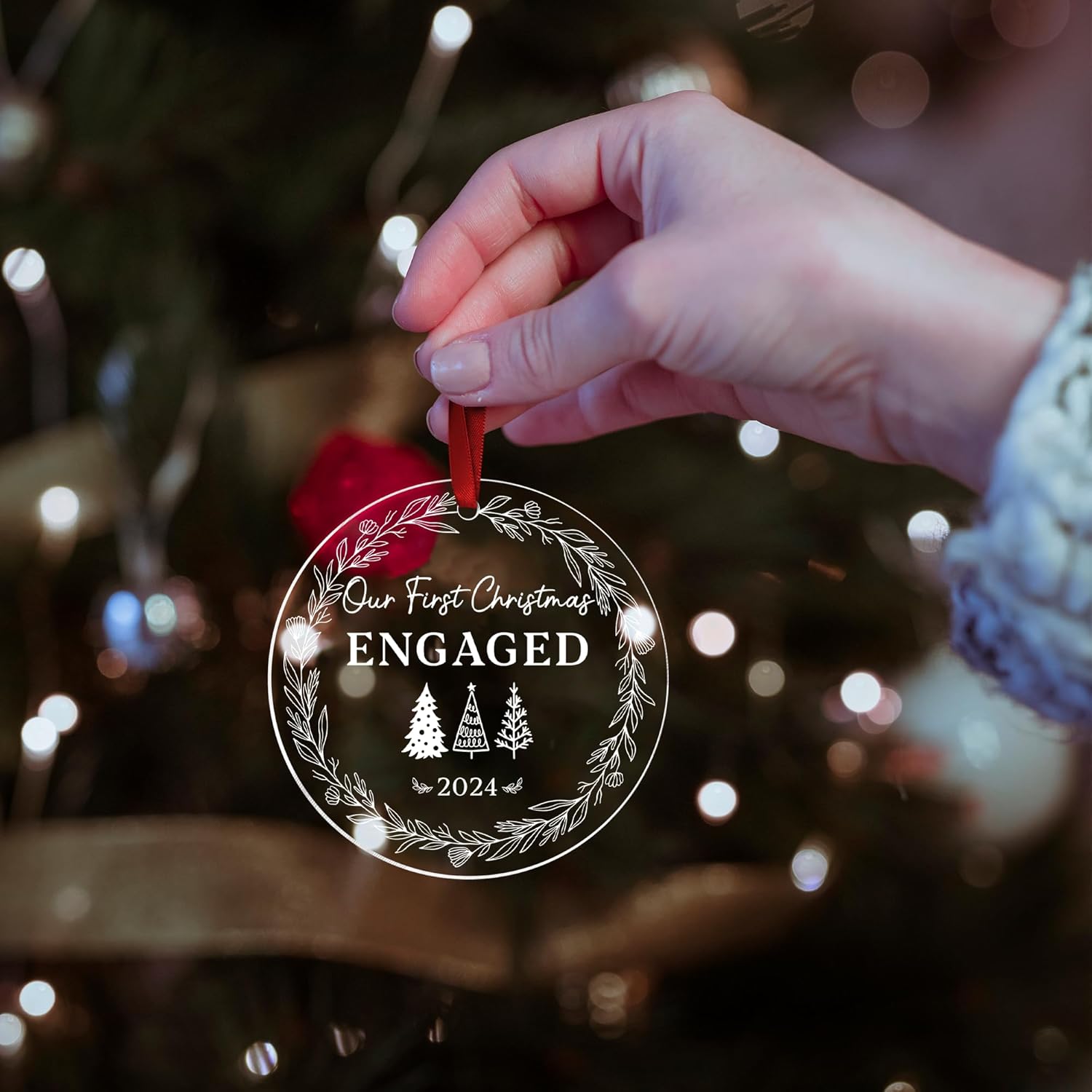 - π CELEBRATE YOUR ENGAGEMENT: Perfect for commemorating your first Christmas as an engaged couple in 2024. Beyond mere decoration, elegant ornament will add a special touch to engaged decorations. Whether you're buying it for yourself or someone else, this engagement ornament makes a unique and thoughtful gift.