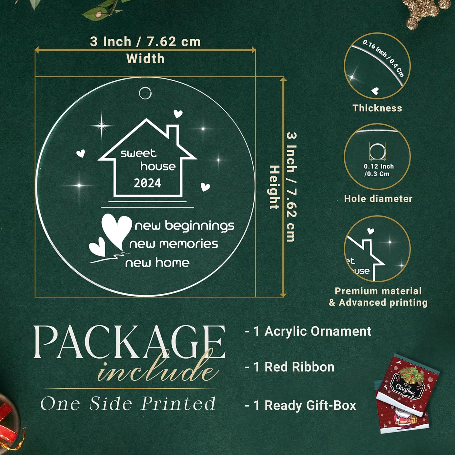 New Home Ornament 2024 - Housewarming Gifts, 2024 Sweet Home, New House Presents for Women, Couple - New Home Gift Ideas 2024 for Christmas, Acrylic Ornament