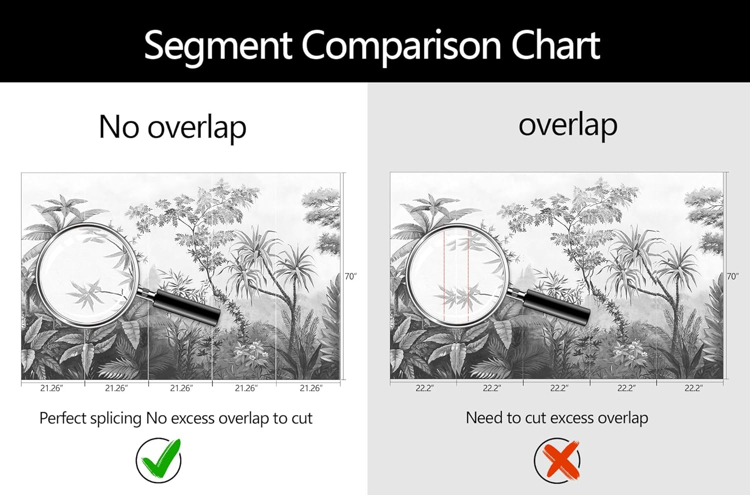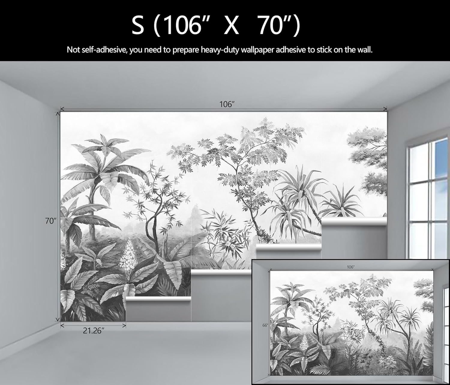 - Mural Size: The total size of this mural wallpaper is 106" x 70" / 270CM x 178CM (W x H), cut into 5 pieces, each measuring 21.26" x 70", for easy installation.
