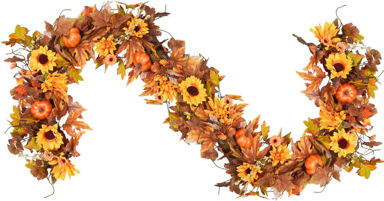 - Try DIY Turning Fall Sunflower Vines: not only can it be used as a fall front door wreath, unfolding the wreath alone, it will turn into a fall garland, approx. 58inch in length