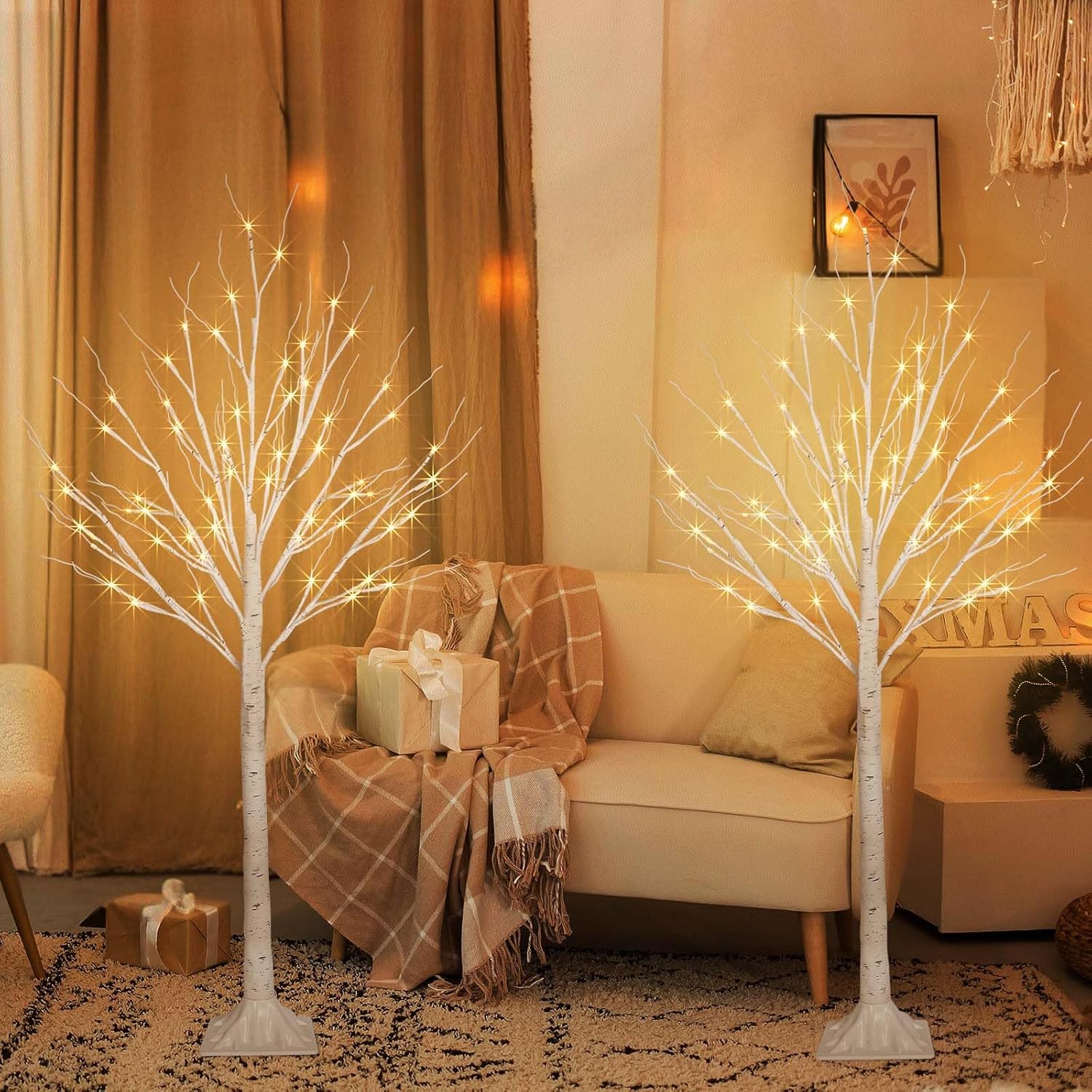2 Pack 4FT 100LED Christmas Lighted Birch Tree, Timer Function Prelit Artificial Tree Lamp Plug in with Warm White Lights, 2 Modes Twinkling Twig Trees for Indoor Outdoor Party Christmas Decorations