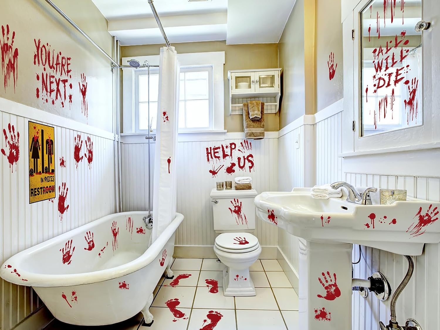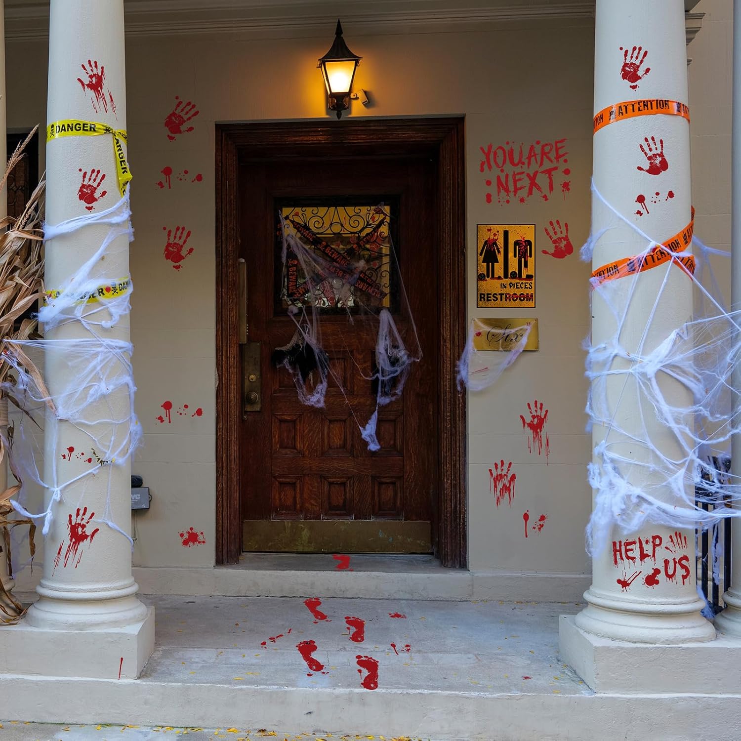 - What You’ll Get: 12 Halloween window clings, including 7 bloody footprint stickers, 2 realistic bloody handprint clings,restroom sign stickers and 2 signs—“Do Not Enter” and “Do Not Leave.” Each sticker features a vivid red hue and intricate design to create an authentically terrifying atmosphere. Perfect for adding a spine-chilling touch to any space, making your Halloween setup truly unforgettable.
