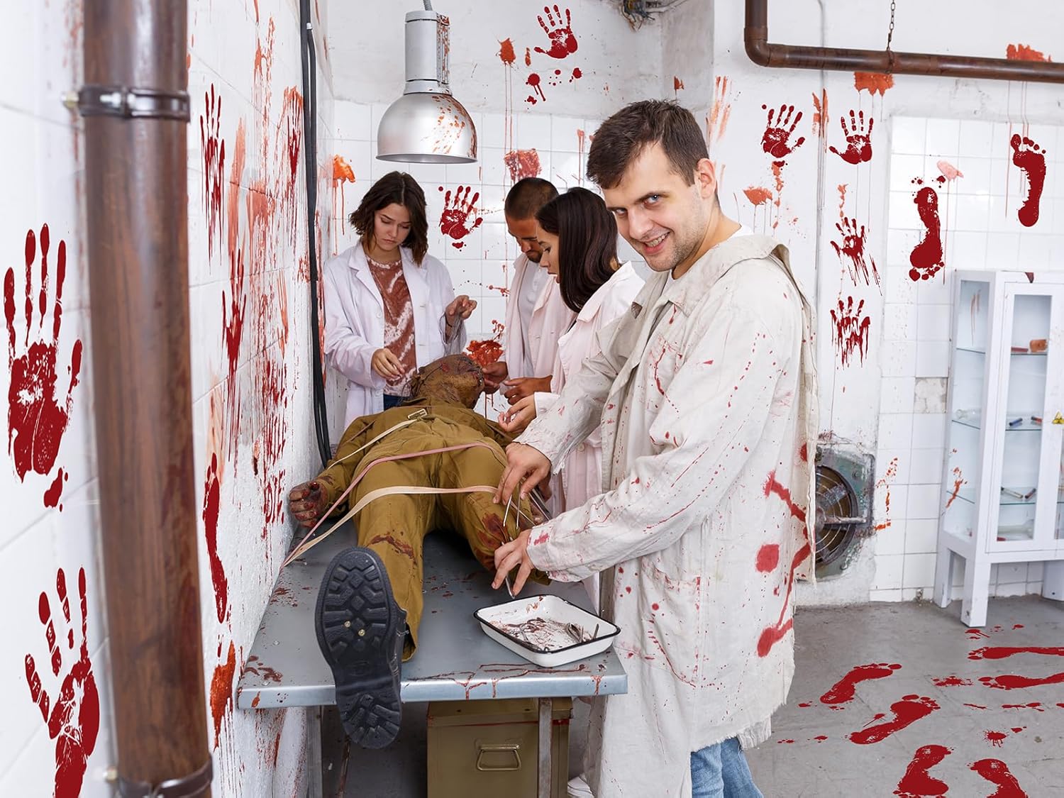 - The Perfect Spooky Party Decoration: Turn your home into the scariest house on the block! Decorate floors, stairs, and pathways with these blood-streaked prints and handprints to simulate a horrifying scene. Place them on your driveway, walkway, or even bathroom steps to create a frightening effect that will shock and amaze your guests. These stickers can transform any location into a chilling spectacle.