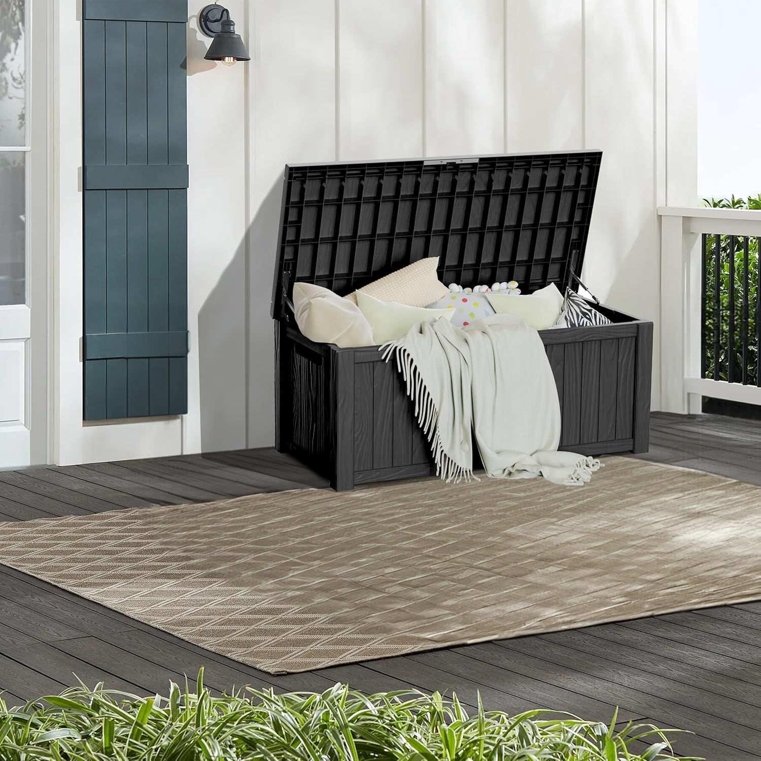 - Wide Range of Use: With a capacity of 150 gallons, this storage box can also be used as a patio seat, storage bench or footstool, whether it's family party supplies, camping equipment, gardening tools.