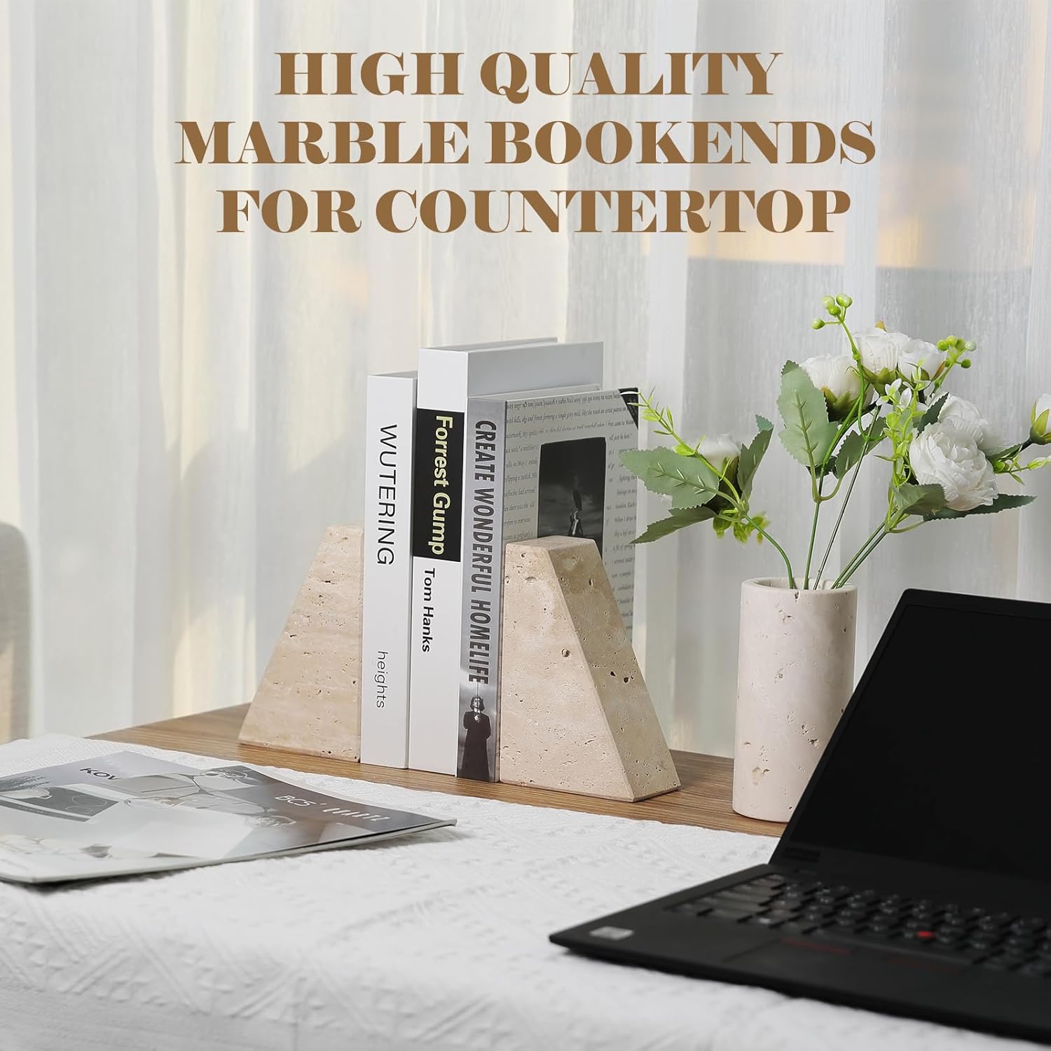 Travertine Bookends for Heavy Books, Marble Decorative Bookends for Shelves, Heavy-Duty Stone Book Ends for Hardback Book & Cookbooks, Unique Book Stopper & Holder, Travertino Italy