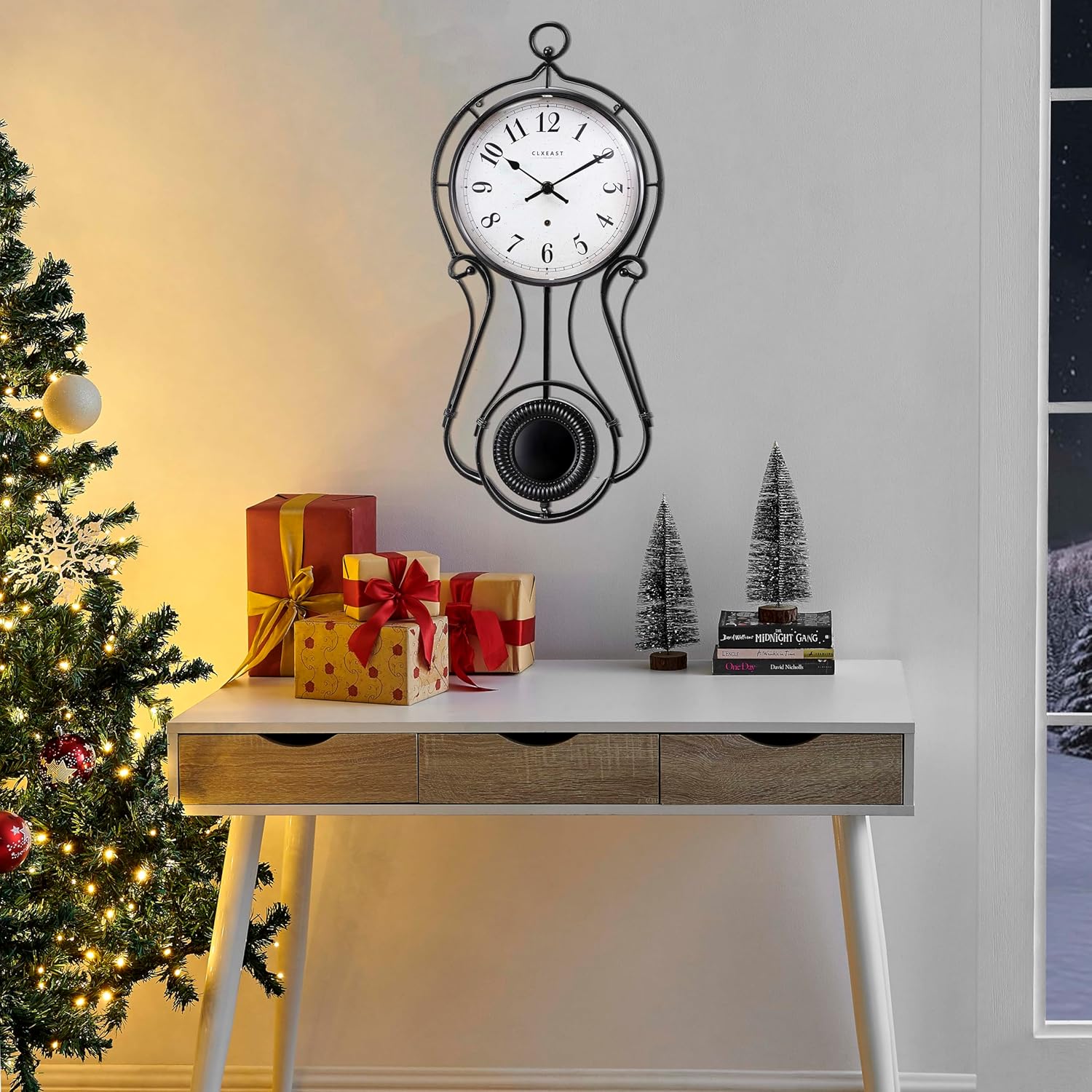 - [Ideal Unique Gift Idea]-This pendulum wall clock fits most decor whether french country, modern farmhouse,industrial,rustic, vintage, traditional, shabby chic, Elegant Mid-century. It can be a great unique Housewarming Gifts,Mother's Day Gift,Father's Day Gift; Perfect Birthday Gifts for Mom/Grandma/Wife,Thanksgiving Gifts ,Valentine's Day Gifts or Christmas Decorations Gifts