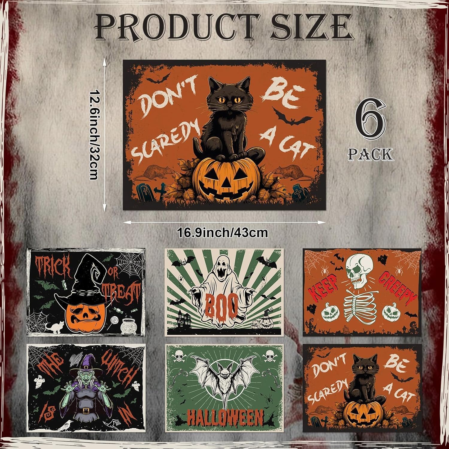 - Vintage Design:Our Halloween washable table decorations different from other placemats, vintage design style will add a scary holiday feeling to your home, but also bring you more choices for Halloween home decoration.