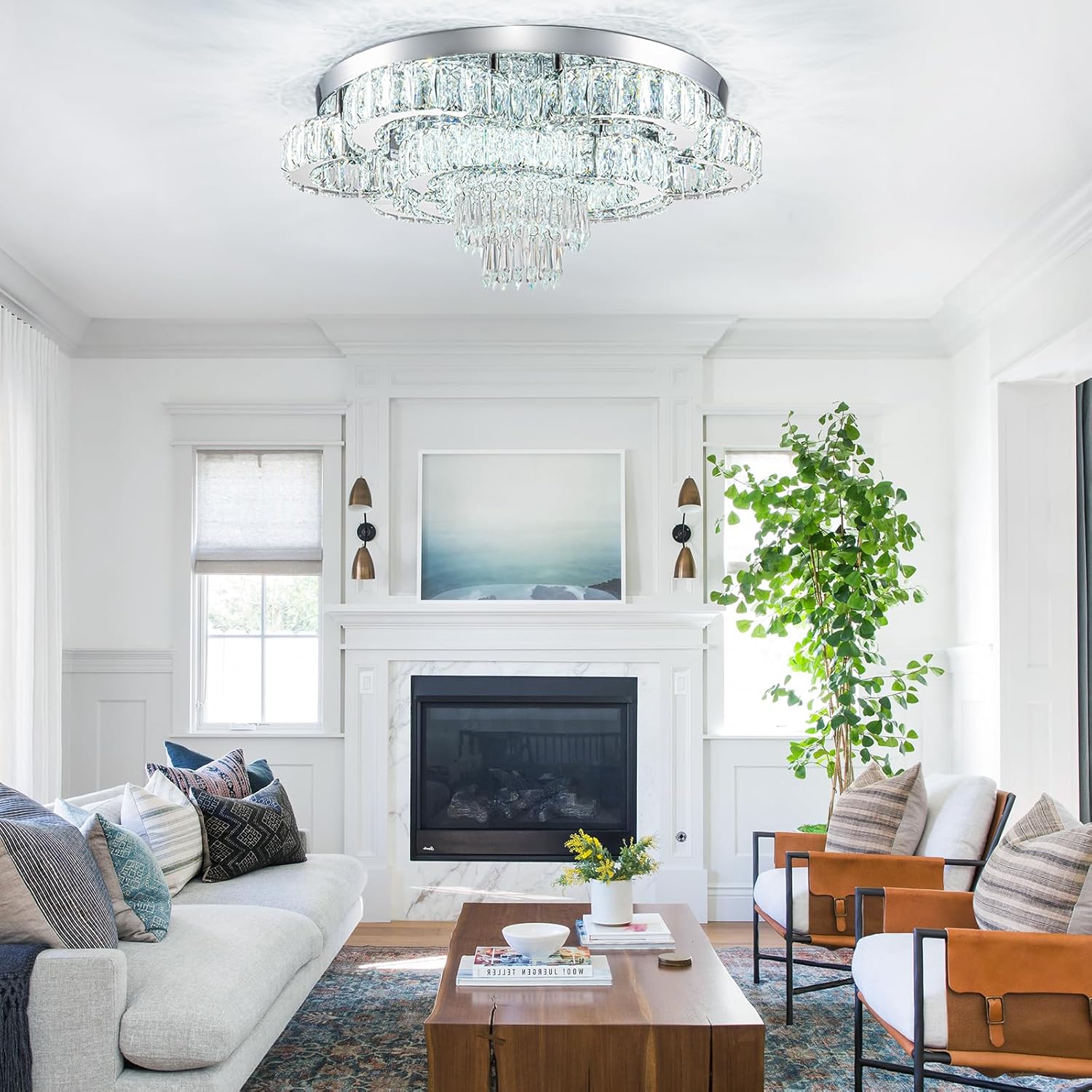 21 Inch Crystal Chandeliers with Remote Control LED Chandelier Modern Mount Flush Mount Chandelier Ceiling Light Fixtures for Bedroom Living Room Dining Room(Dimmable)