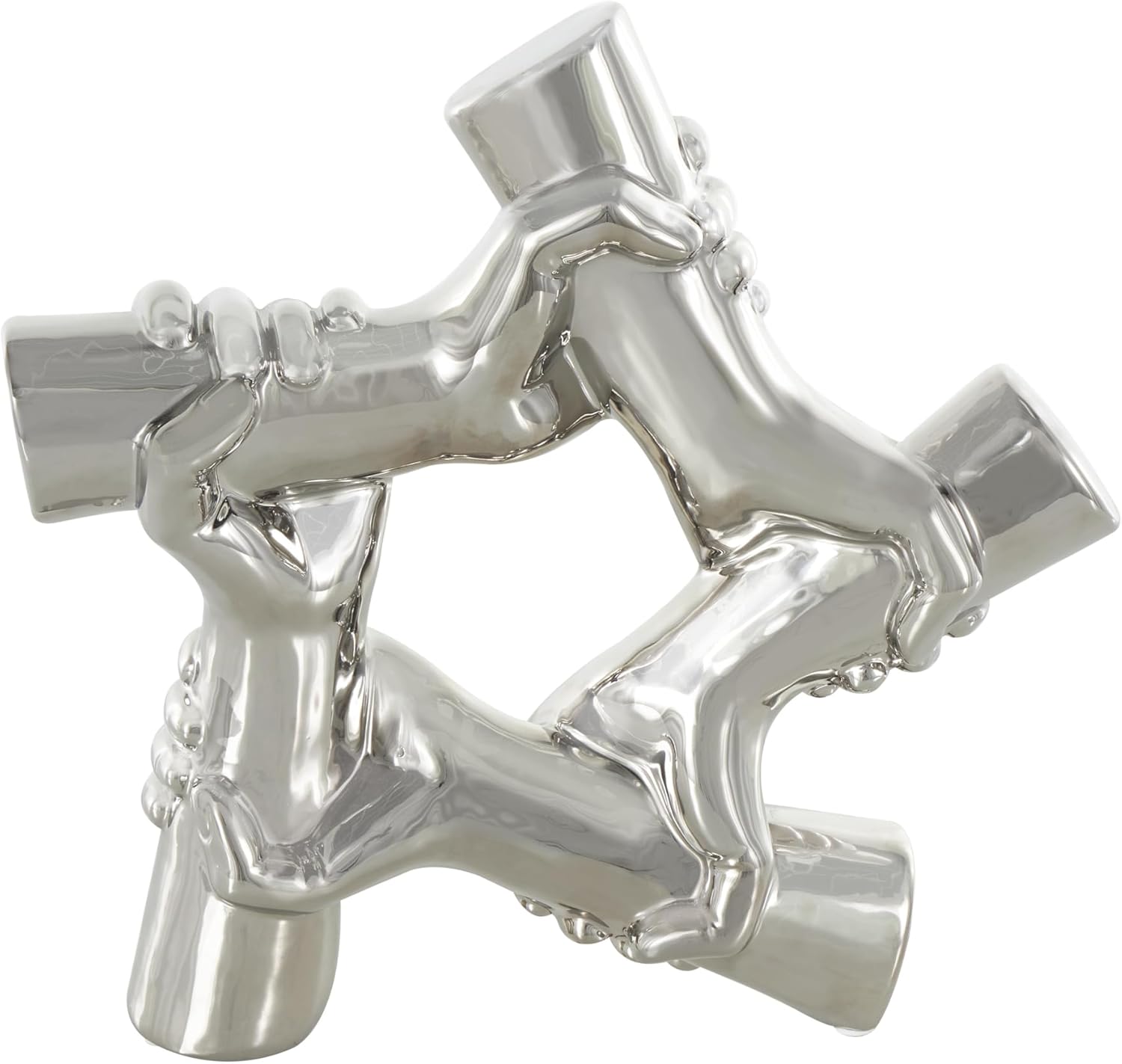 Deco 79 Ceramic Hands Decorative Sculpture Gripping Home Decor Statue, Accent Figurine 13" x 4" x 13", Silver