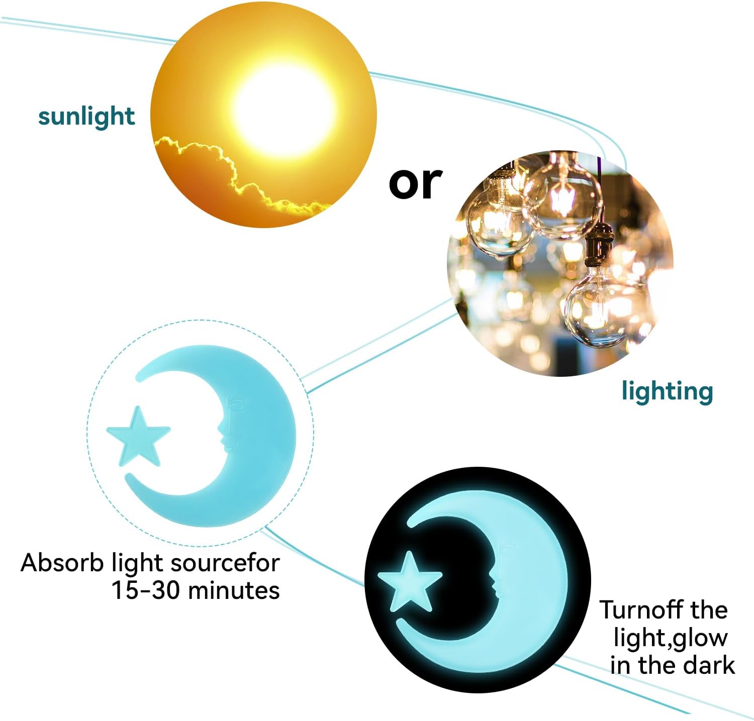 - Package Included: You will receive 100 luminous stars and 1 lunar wall sticker. The star size is 1.1 inches/2.85 centimeters, and the moon size is 2.7 inches x 3.1 inches