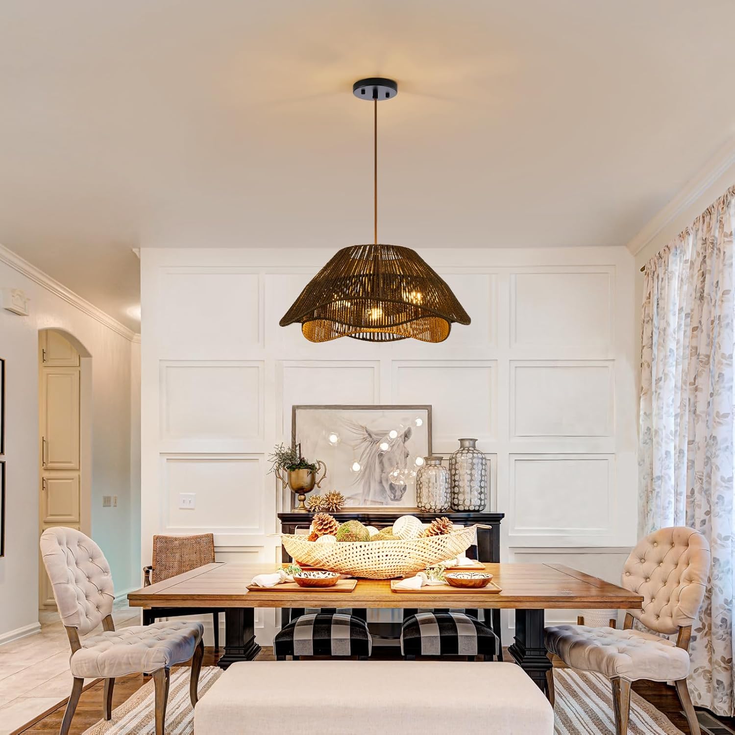 - 【Wide Applications】This antique rattan chandelier blends mid-century and boho style! Perfect for hanging above a dining room table, kitchen island, living room, bedroom, bathroom, entryway, hallway or foyer to add a touch of elegance to your space.