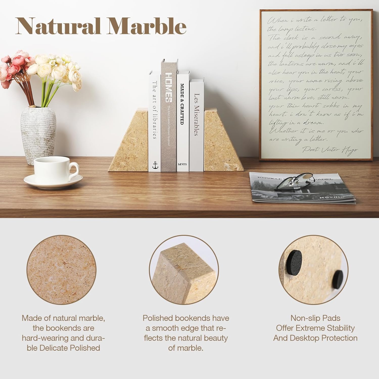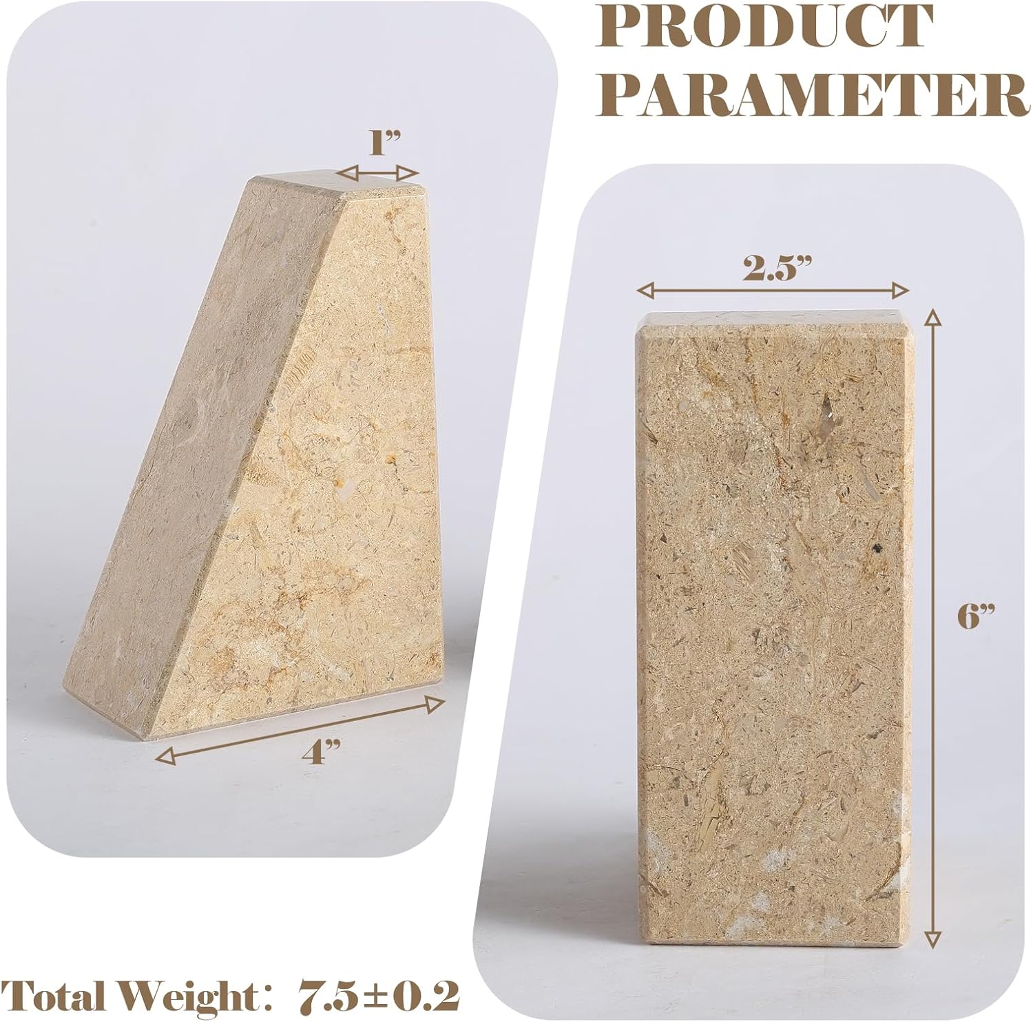 - NATURAL MATERIAL: The heavy duty bookends weight 7LB and are equipped with 4 non-slip pads to effectively minimize scratches on your desktop. Make your reading time more relaxing and ensure the safety of you and your family with this stone book ends for shelves.