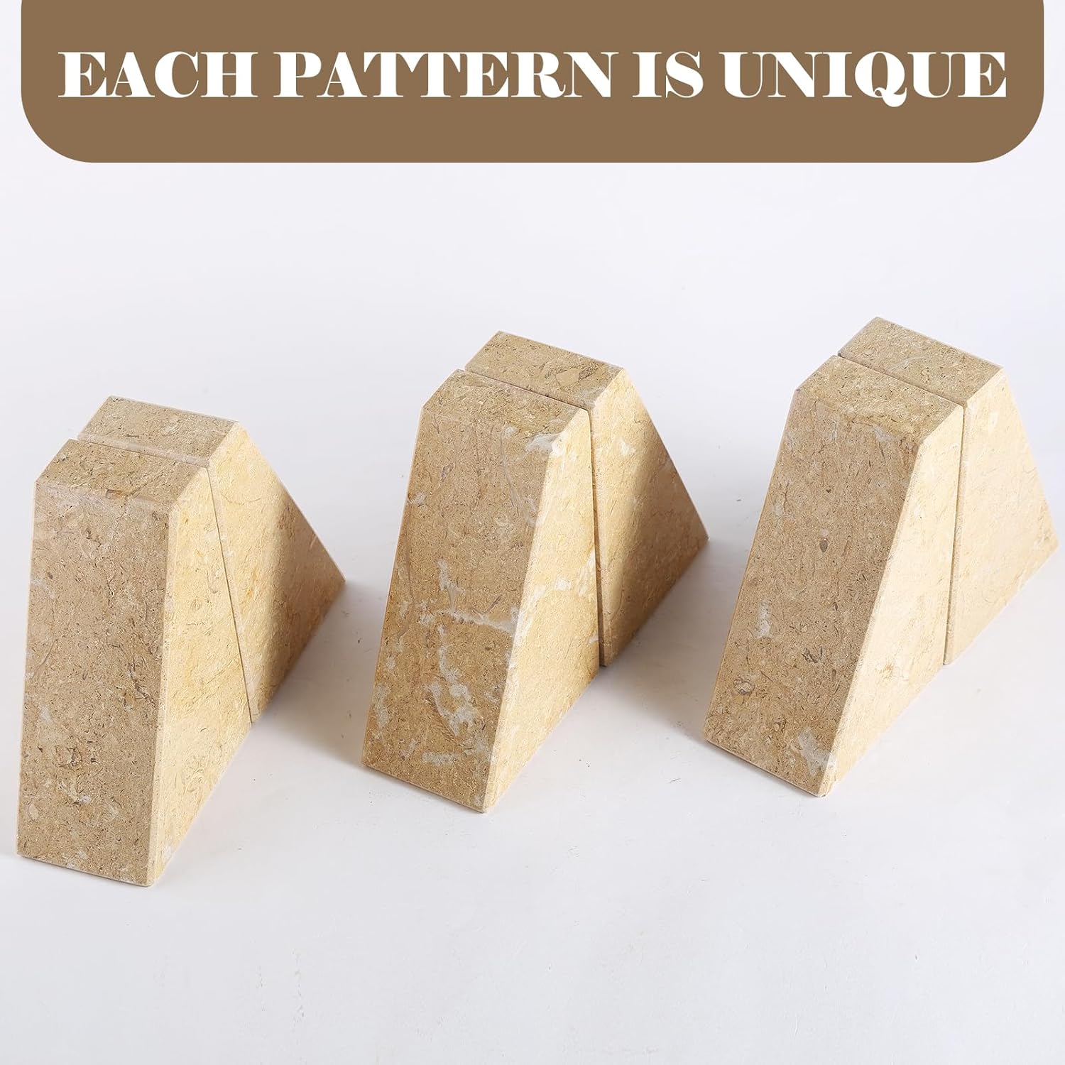 Marble Bookend for Heavy Books, Decorative Bookends for Shelves, Durable and Heavy-Duty Book End for Hardback Book & CDS, Unique Book Stopper & Holder, Pearlly Yellow, Set of 2