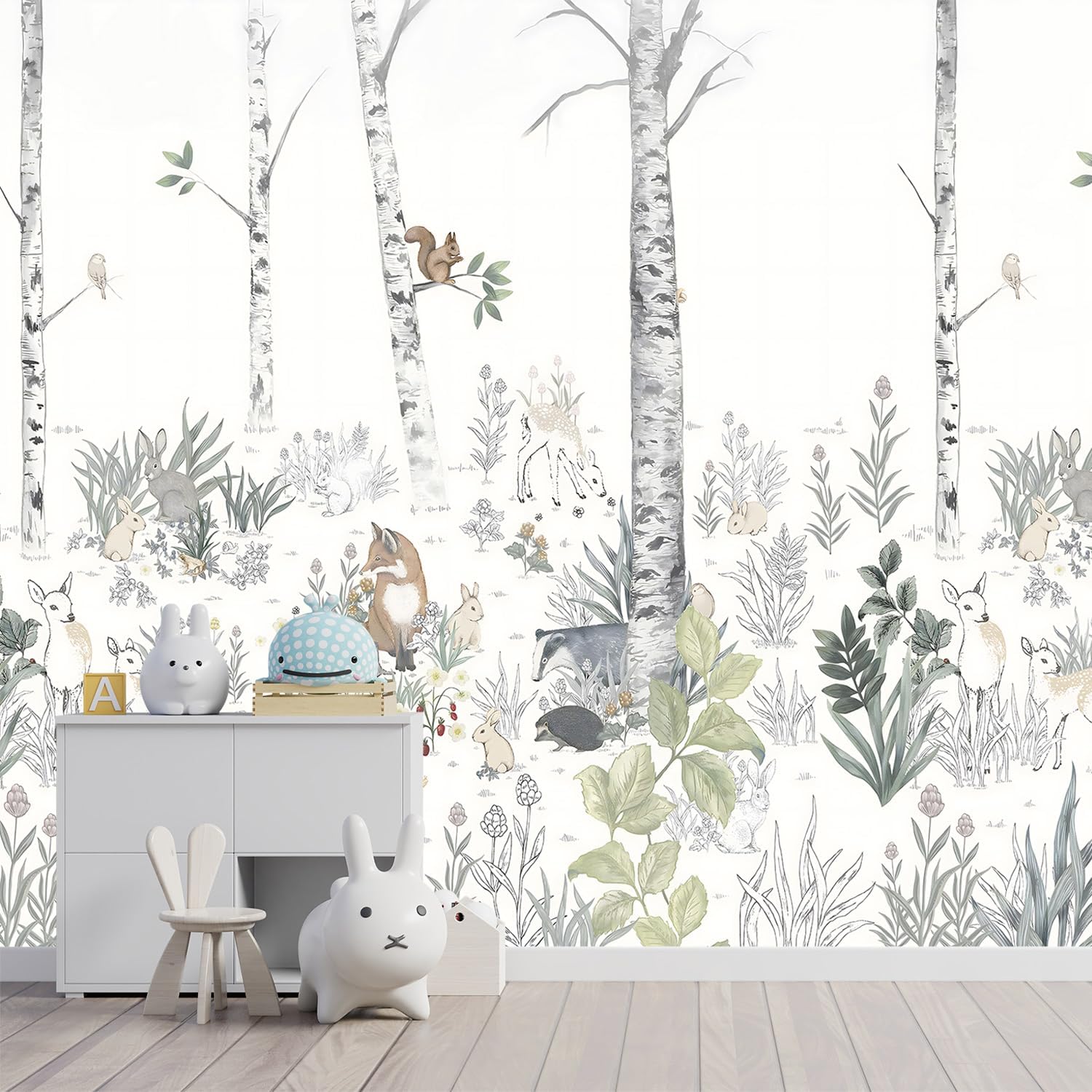 -Nursery Cartoon Woods Hand-Painted Animal Wallpaper Children's Room XT10 M 140" x 91"