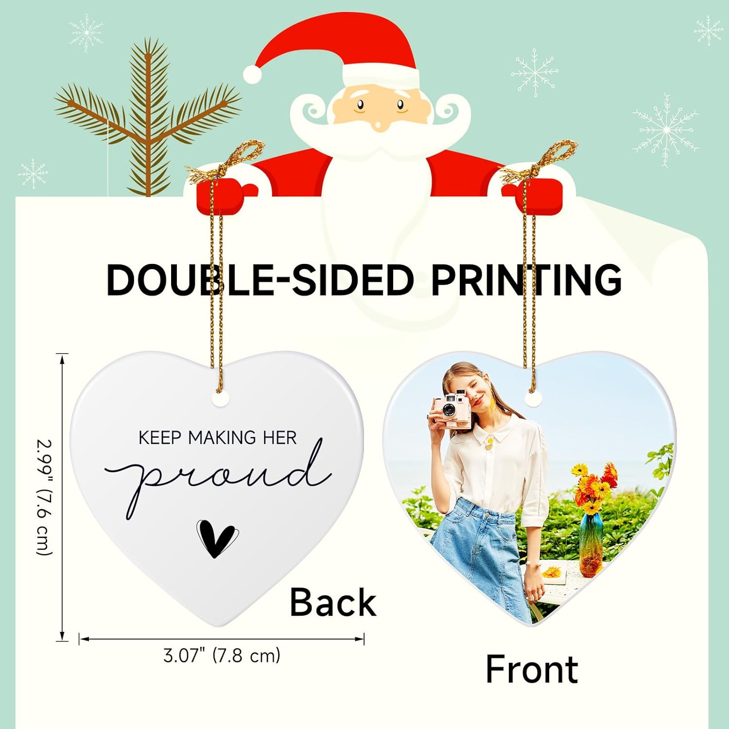 - 【Personalized Keep Making Her Proud Ornament】 You can choose to print the same custom text on both sides in the customization page, or you can choose to print the”Keep Making Her Proud”on the front side and upload images and text on the back side. Perfect Christmas gift, memorial gifts for loss of loved one. It's a warm and loving way to honor someone we love enduring presence in your heart