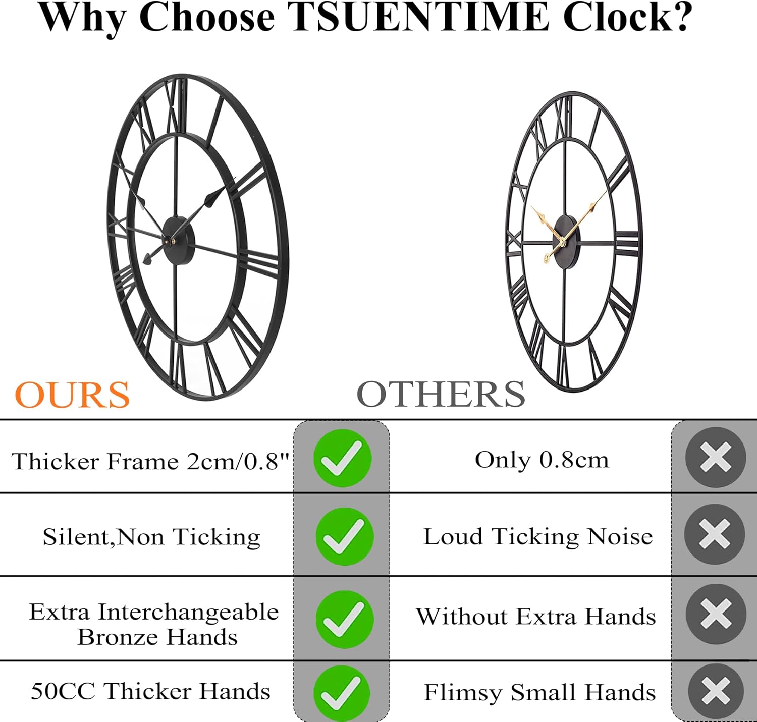 - ăExceptional CraftsmanshipăHandmade welding from high-quality 2cm thicker metal, this powder coated matt black 30 inch wall clock is built to last. Its sturdy build ensures longevity, making it a reliable oversized wall clock that enhances your living space for years to come