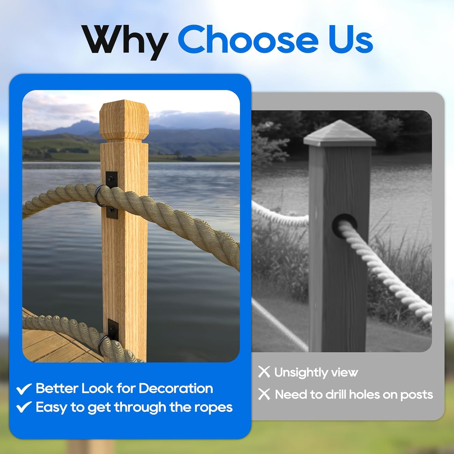 - Versatile holders: ideal for not only rope railings but also docks, marinas, nautical rope decks, gardens, and more. Whether for home decoration or outdoor activities, this holder can be flexibly applied to meet your diverse needs.