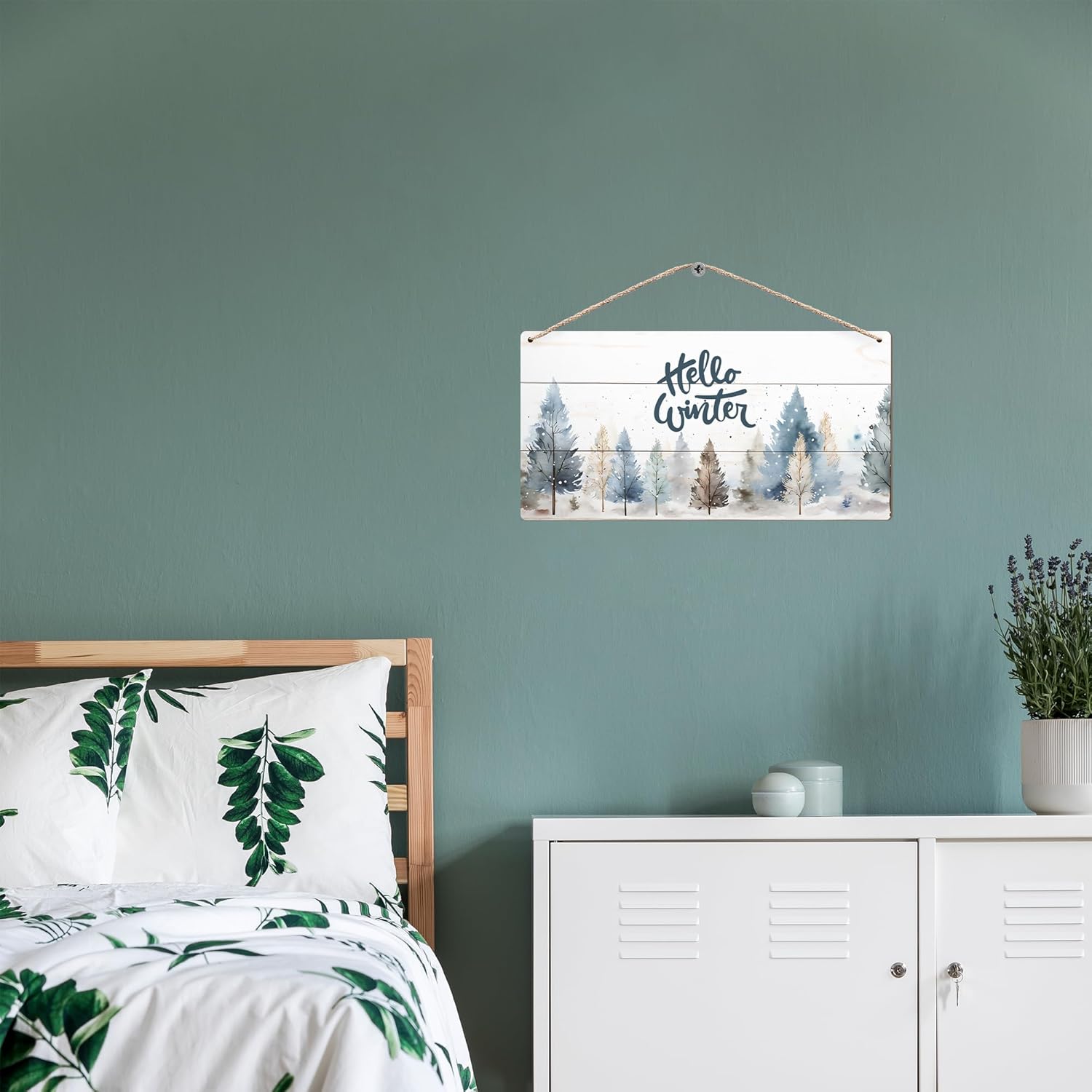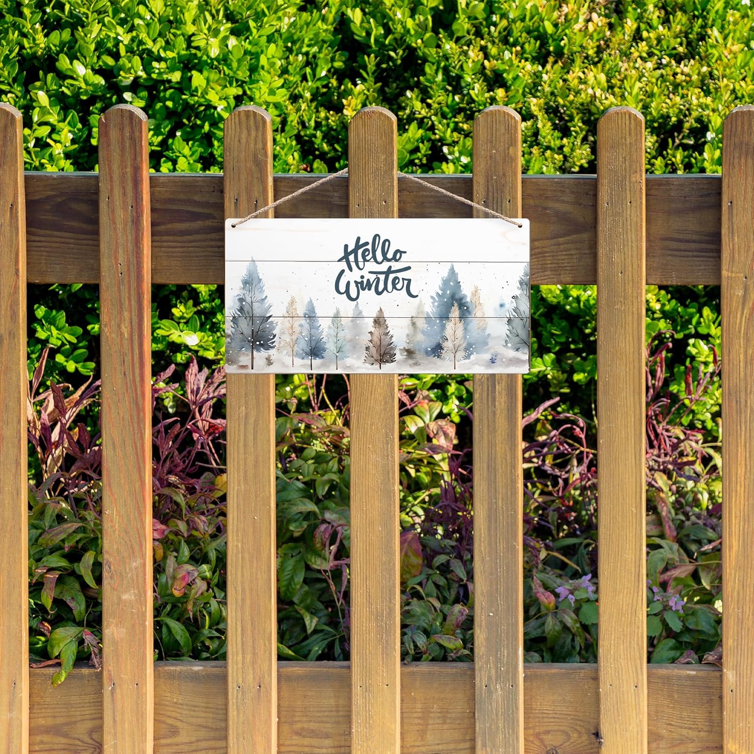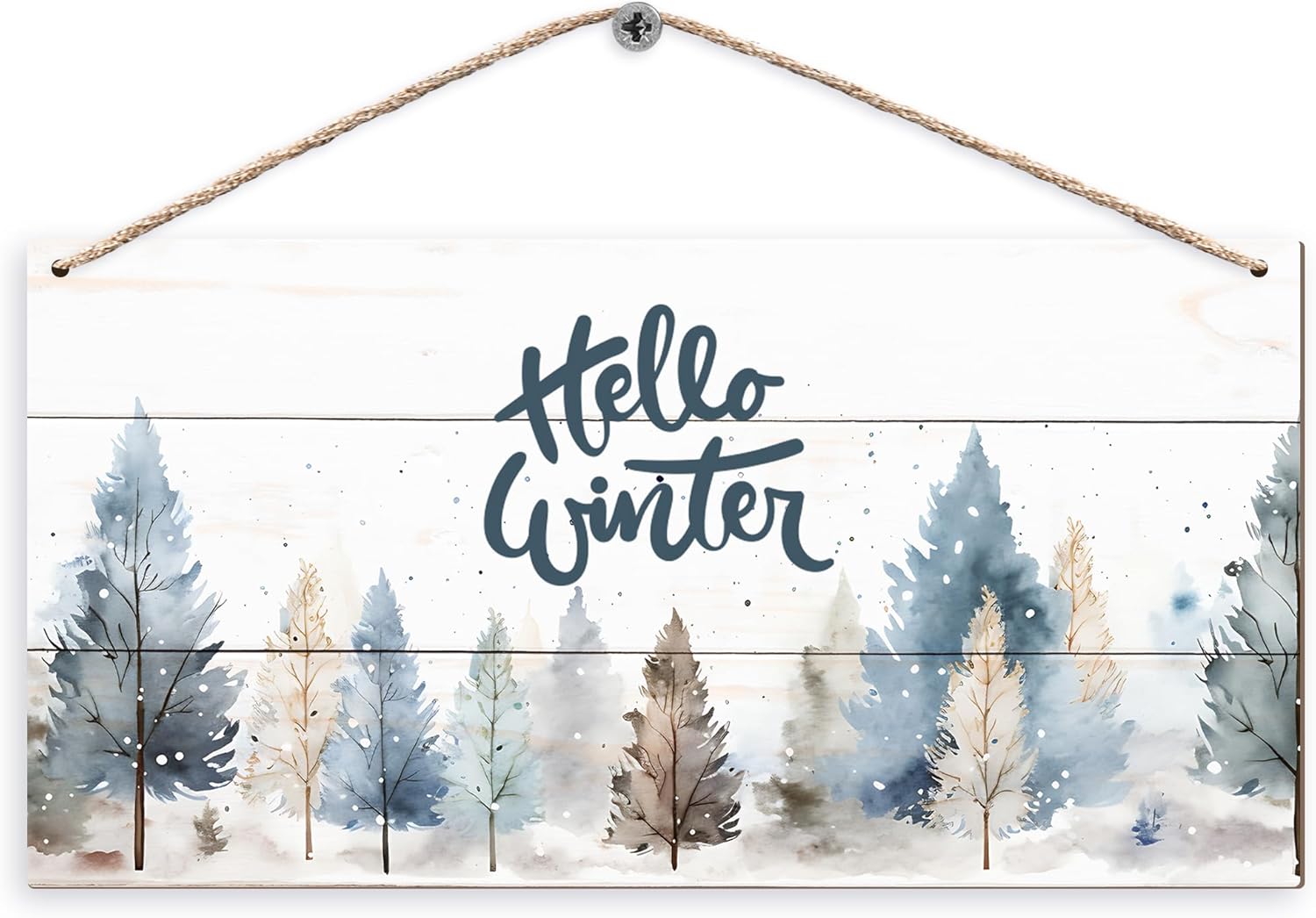 DUXMNAMG Hello Winter Welcome Hanging Wooden Signs 12x6, Pine Tree Decor, Winter Door Decorations, Winter Door Sign, Rustic Winter Christmas Snowflakes Trees Home Room Office Hanging Wall Decor