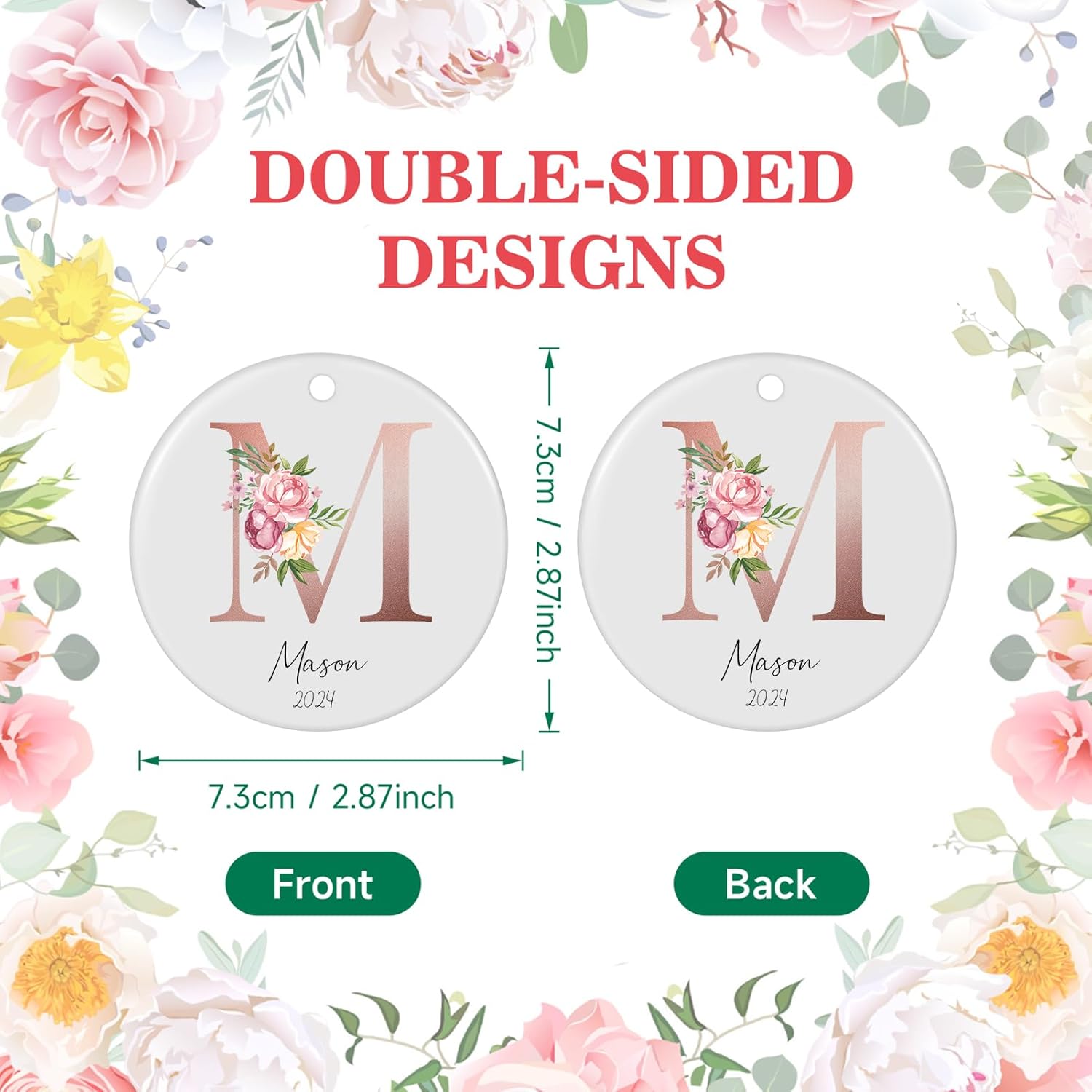 - CUSTOMIZED INITIAL ORNAMENT: Add a special touch to the holiday season by personalizing the ornaments with the recipient's initial, name, and the year. This monogram ornament initial for stocking is great for boys, girls, and adults alike, whether you're looking for a personalized christmas ornaments or a floral name ornament. Each ornament makes a thoughtful gift and is perfect for creating initial letter christmas ornaments for the whole family.