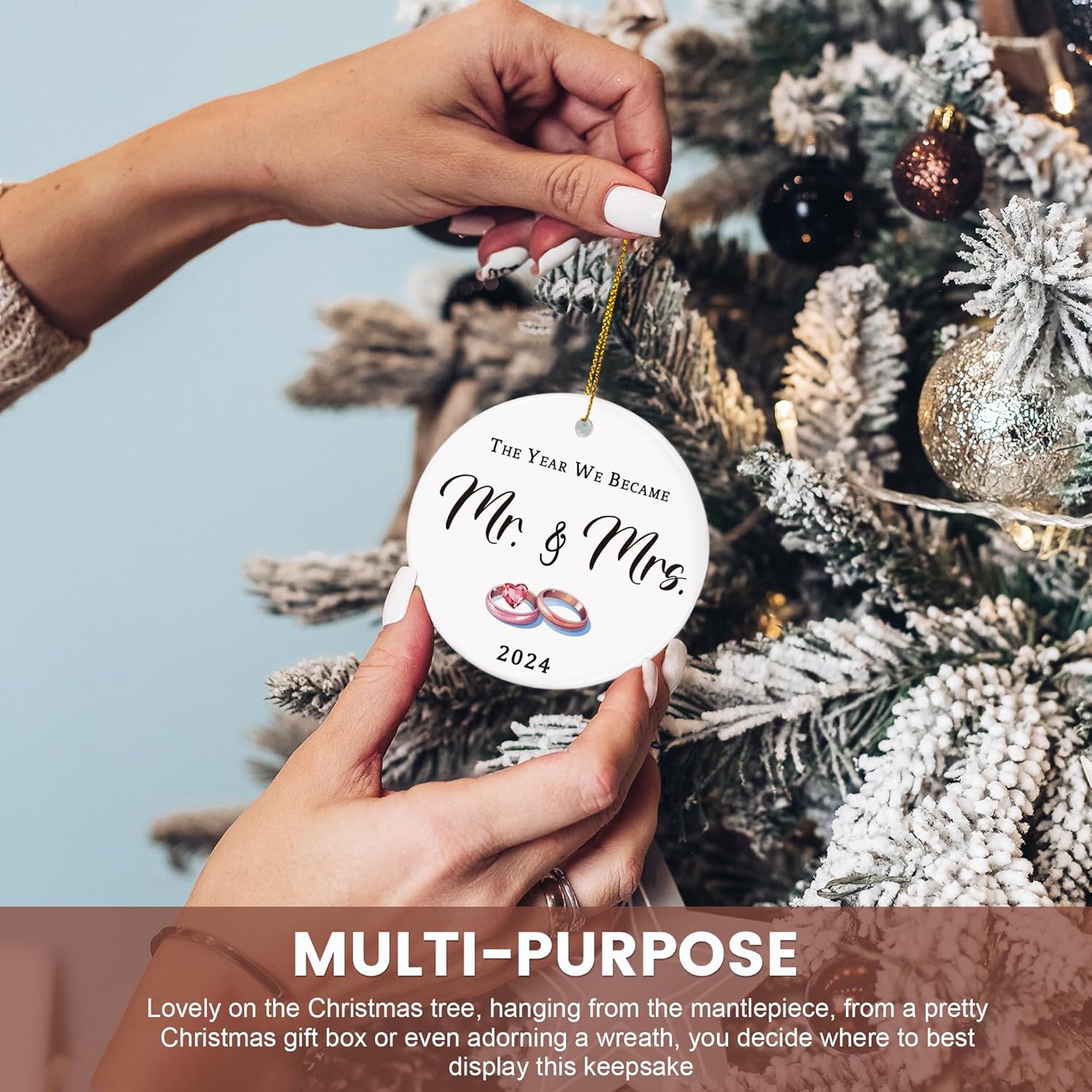 Wedding Gifts for Couples 2024, Mr and Mrs 1st Married Christmas Ornament, Bridal Shower Gift for Bride, Newlyweds (Ceramic)