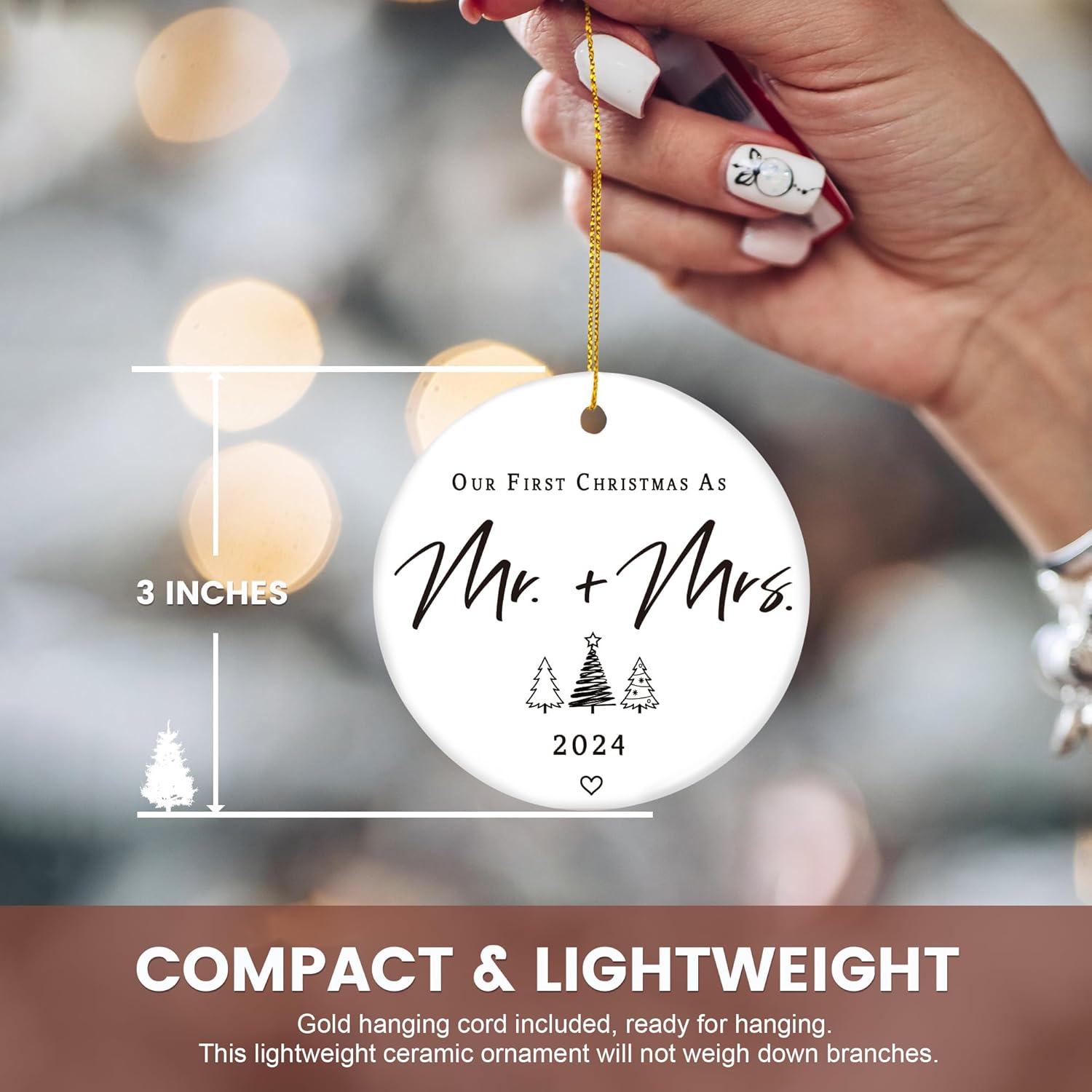 Our First Christmas Married Ornaments - Wedding Gift for Couples 2024, 1st Christmas as Mr and Mrs, Bridal Shower, Just Married Newlywed Couples