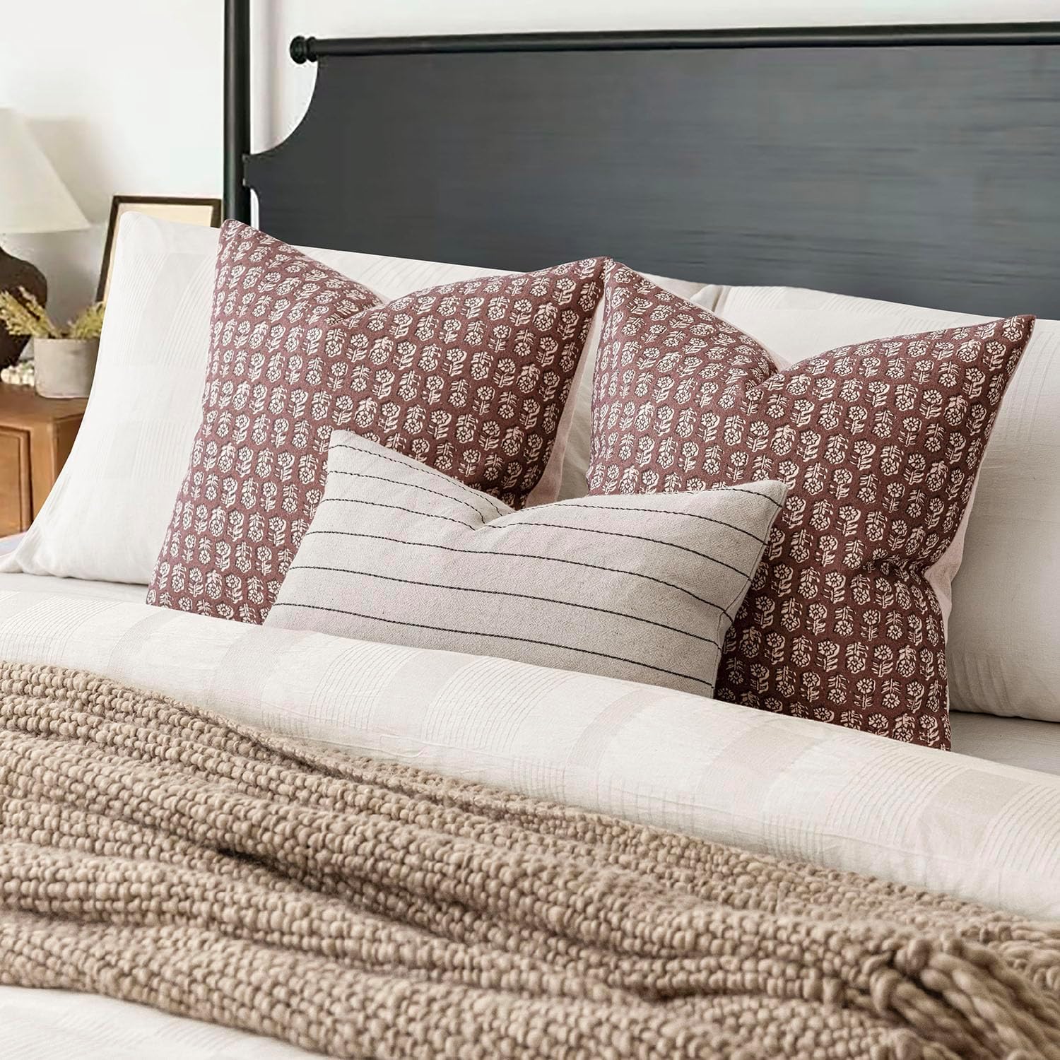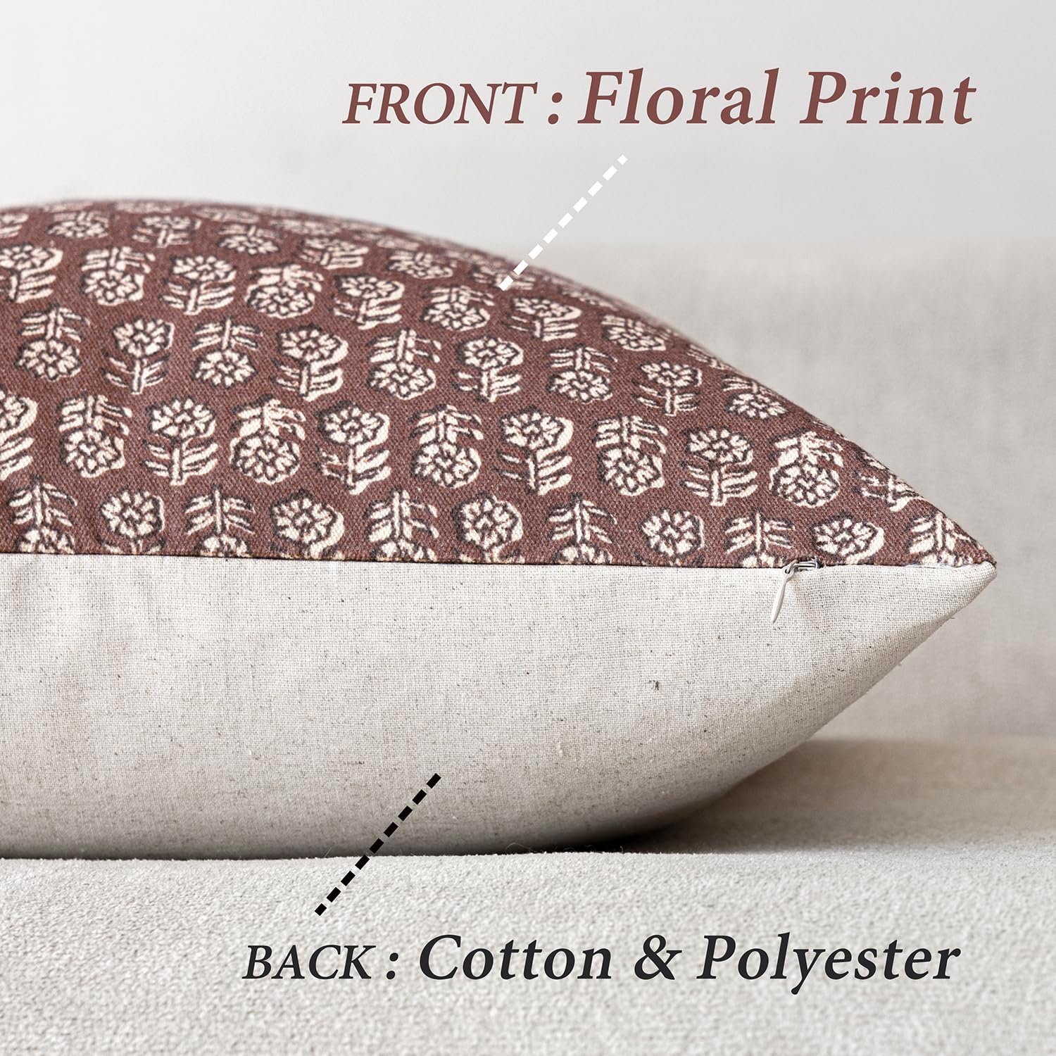Foindtower Set of 2 Decorative Vintage Floral Print Throw Pillow Covers Neutral Modern Farmhouse Cushion Covers Boho Home Decor for Sofa Couch Chair Bedroom Living Room Outdoor,22×22 Inch,Wine Red