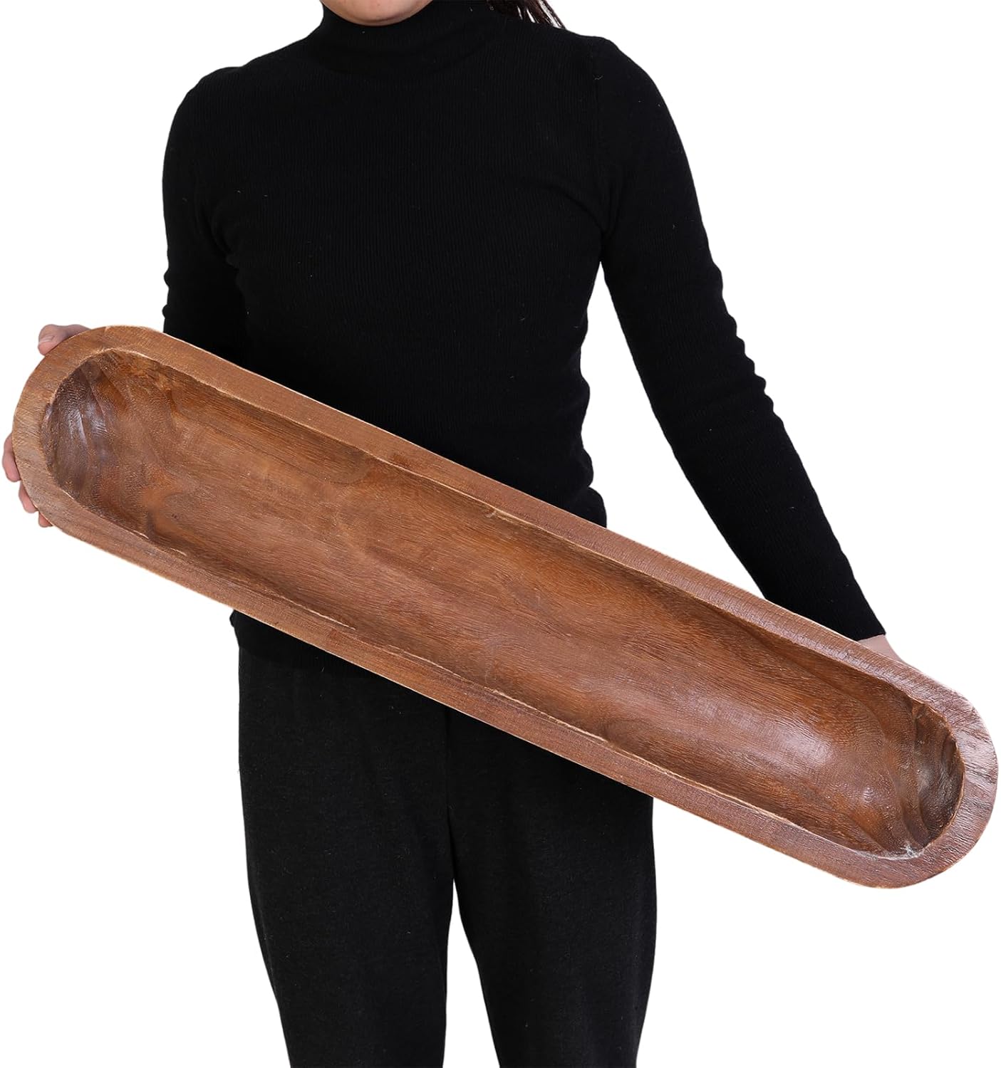 Athaliah Wooden Dough Bowl, Hand Carved Rustic Long Wood Dough Bowls for Decor, Vintage Decorative dough bowl for Table Centerpiece (30 Inch-Brown)