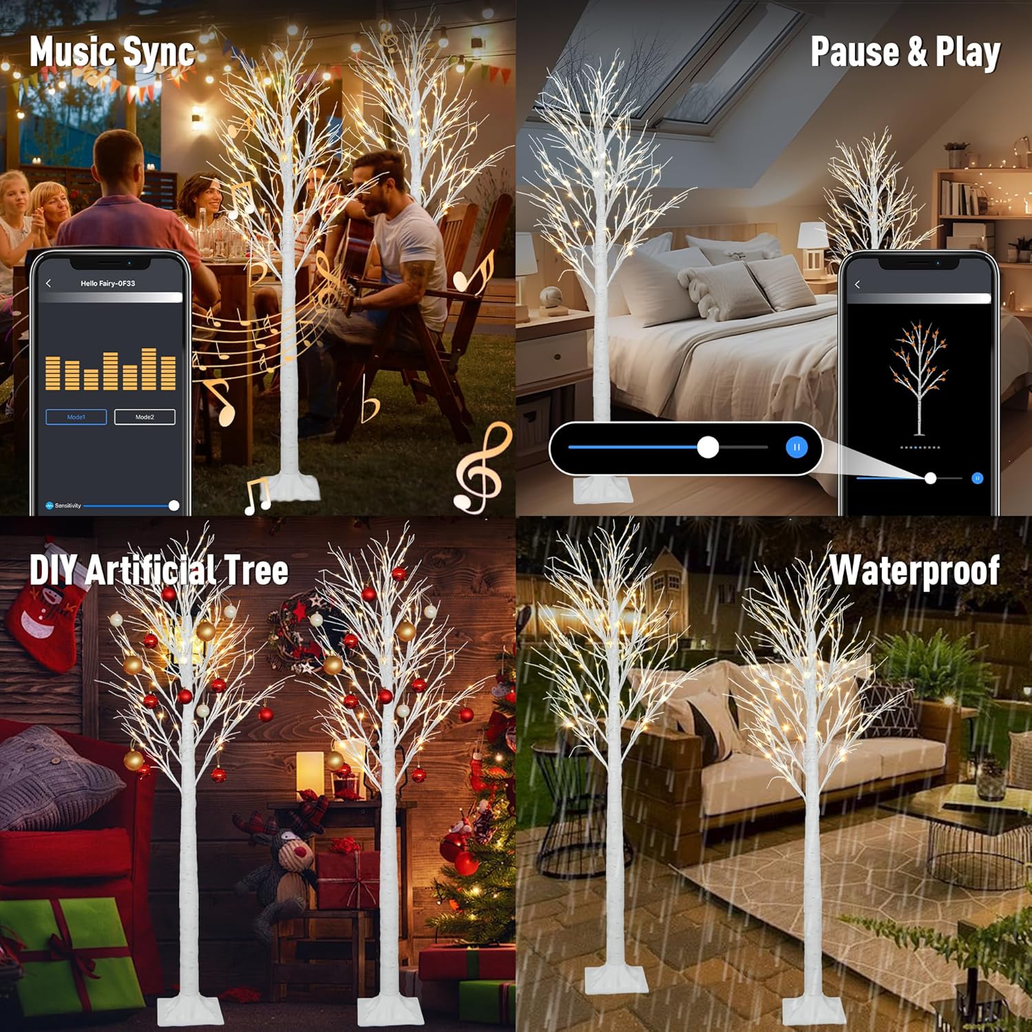 Smart Lighted Birch Twig Tree with Fairy Lights, APP Conrol, 6FT 120 Warm White LEDs, 18 Modes, Dimmable, Schedule, Music Sync Waterproof for Indoor Outdoor Home Christmas Holiday Decor, 2pack