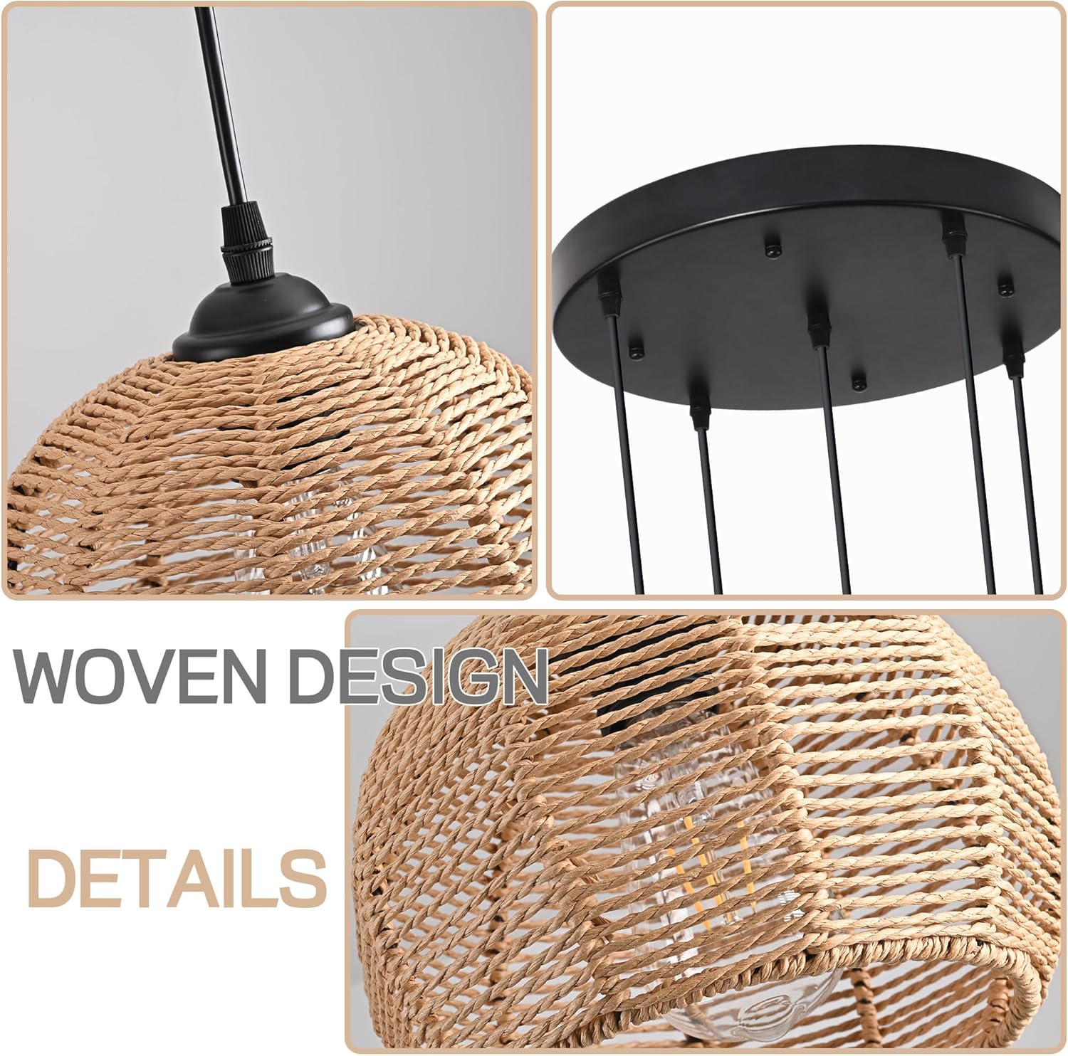 - Wide Application: Hand-woven by natural materials, this light fixture can be used as an artistic decoration for many spaces. Suitable for Foyer Living Room Hallway Staircase entryway Kitchen Island Loft etc