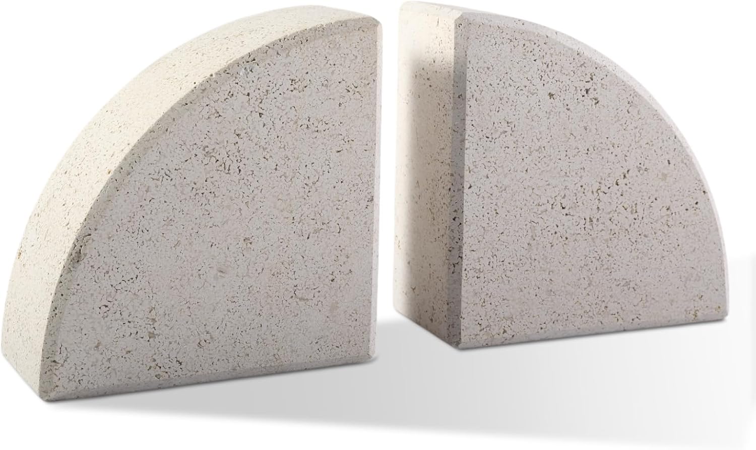 Marble Bookend for Shelves, Non-Skid Bookends for Heavy Books, Heavy Duty Book Stopper for CDs, Luxury Book Shelf Holder, Quarter Circle Design Book Ends Decorative, Moleanos Beige, Set of 2