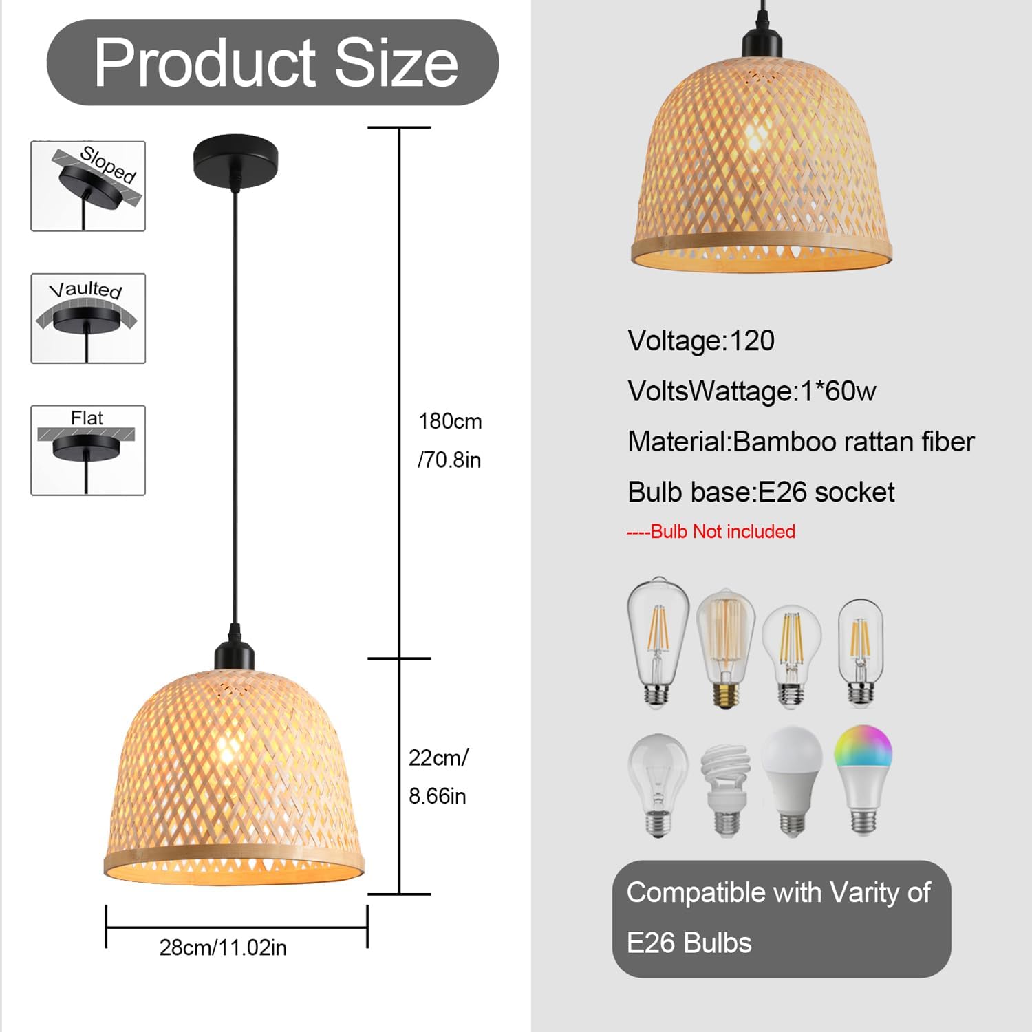 - 【 Easy installation】Bamboo and Rattan pendant light all mounting hardwares are included and installation process is simple, which just need 5 minutures. open the package when installing the lampshade please gently open the folding lampshade, mounted to the metal bracket, connect to the power supply, press the switch button to turn on or off the light.If you need to find seller support