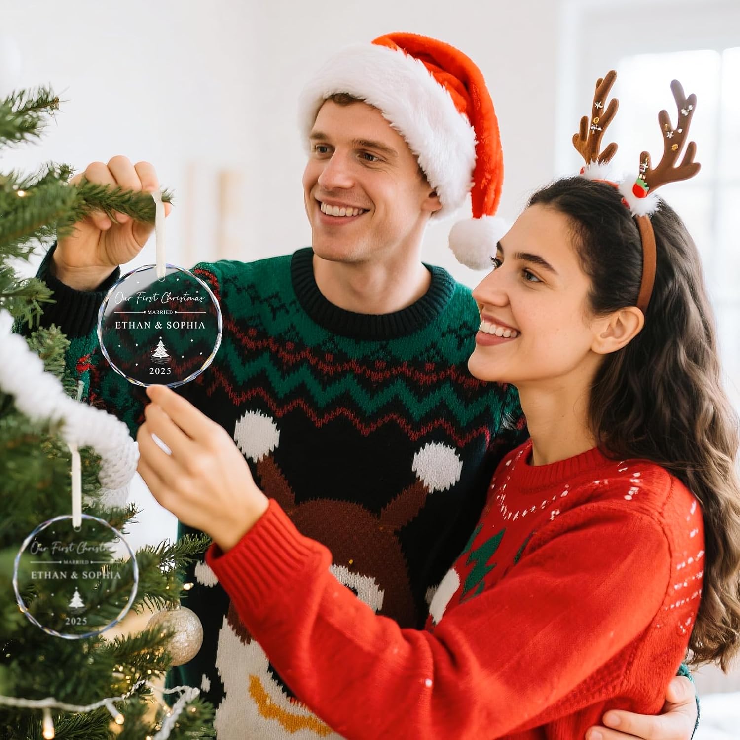 - CUSTOM CHRISTMAS ORNAMENTS FOR COUPLES: Click "Customize Now" to start personalize your own ornament special with name, date etc. Let this ornament express your warmest and most genuine wishes to a newlywed couple embarking on the beautiful journey of marriage. For your future mate, this personalized christmas ornament 2025 will commemorate the important things in life & create lasting and loving memories.