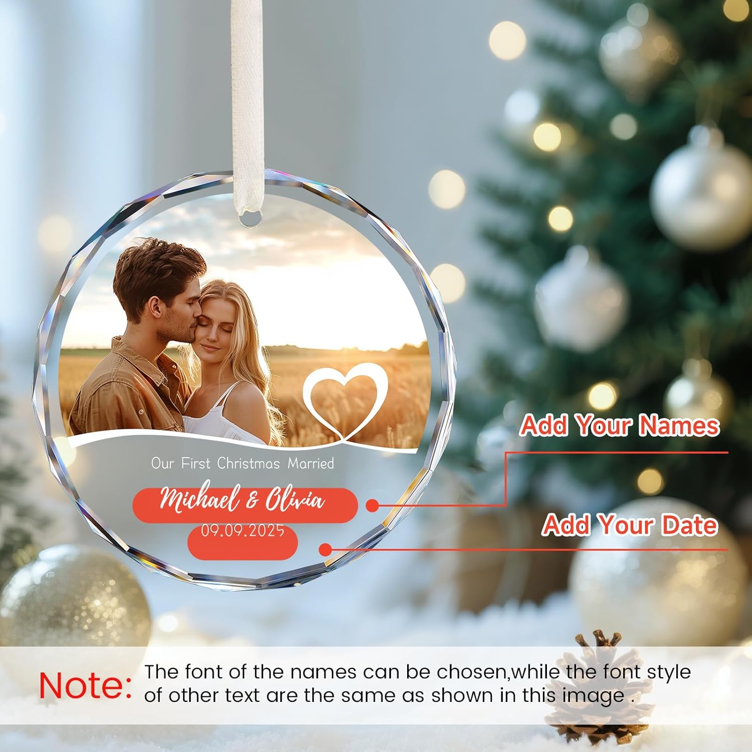 - CUSTOM CHRISTMAS ORNAMENTS FOR COUPLES: Click "Customize Now" to start personalize your own ornament special with name, date etc. Let this ornament express your warmest and most genuine wishes to a newlywed couple embarking on the beautiful journey of marriage. For your future mate, this personalized christmas ornament 2025 will commemorate the important things in life & create lasting and loving memories.