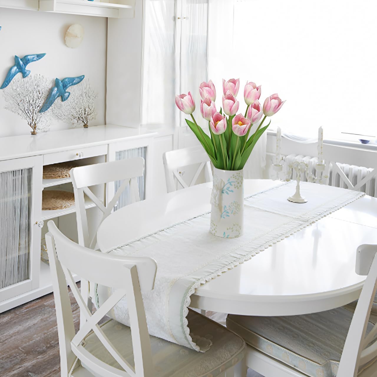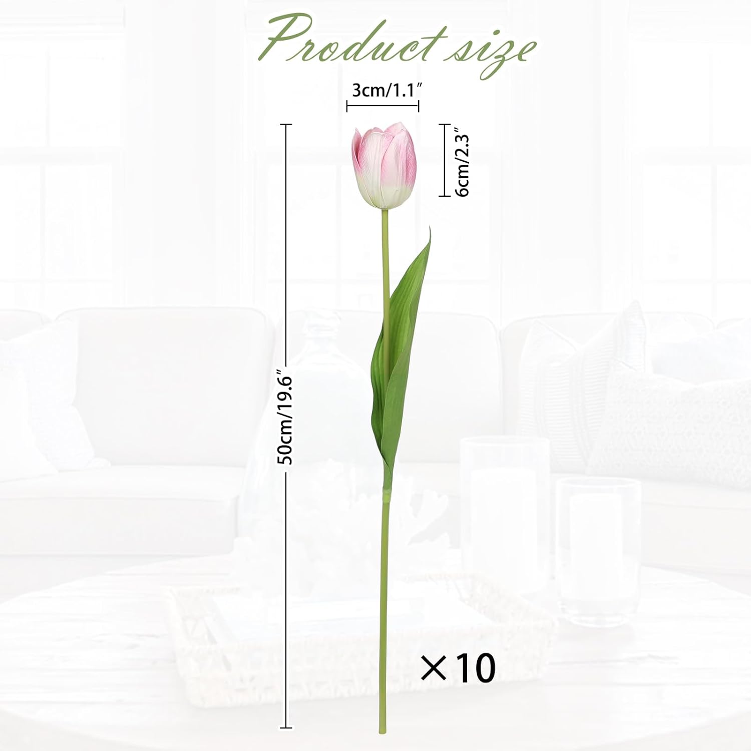 Artificial Tulips Flowers – 20" Long Stem Faux Tulips, 10PCS Real Touch Fake Pink Tulip for Vase, Farmhouse, Kitchen, Spring & Wedding Home Decor