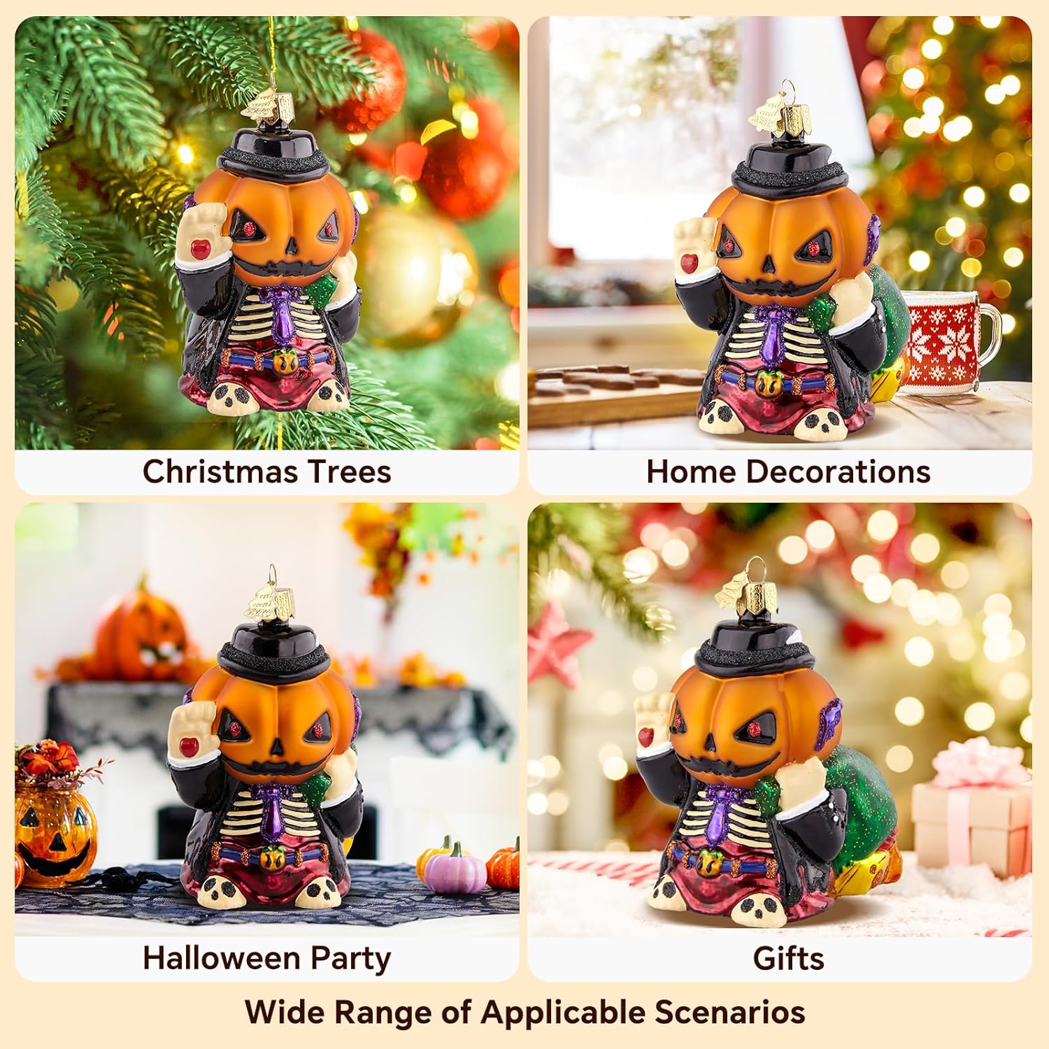 - Premium Quality: Pumpkin Head Ornaments size: 3.9*2*2.8 in. Christmas decorations are made of glass, not easily damaged by natural use, with a delicate and smooth surface, no irritating odor, reusable, lightweight, and easy to clean with a soft cloth (Warm Tips: The product is hand-painted, be careful not to place it in the sun for a long time)