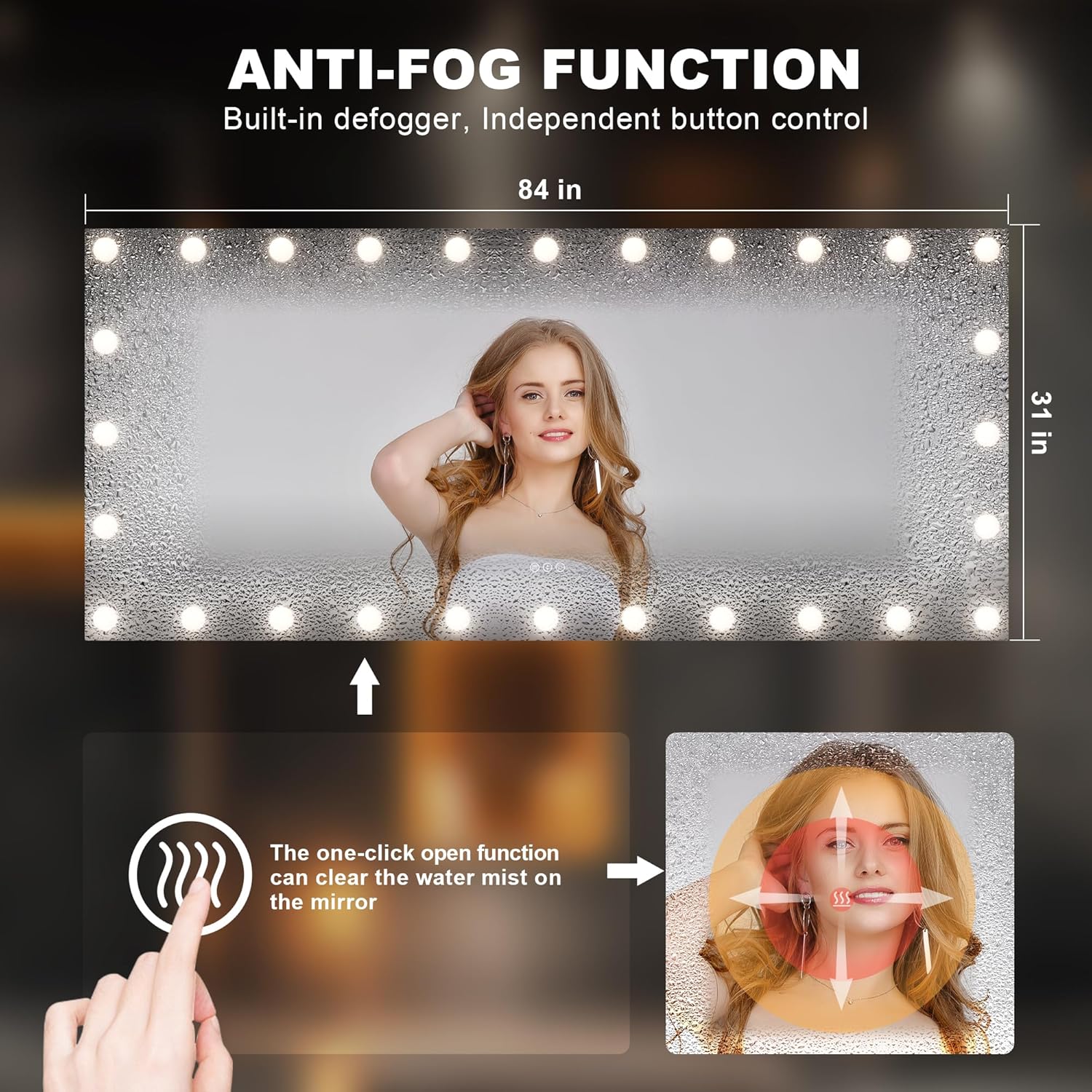 Hasipu LED Bathroom Mirror with Lights, 71" x 32" Hollywood Wall-Mounted Bathroom Mirror with 28 Dimmable Bulbs, 3 Colors Modes, Touch Control, Anti-Fog, Memory Function, Shatter-Proof, ETL Listed