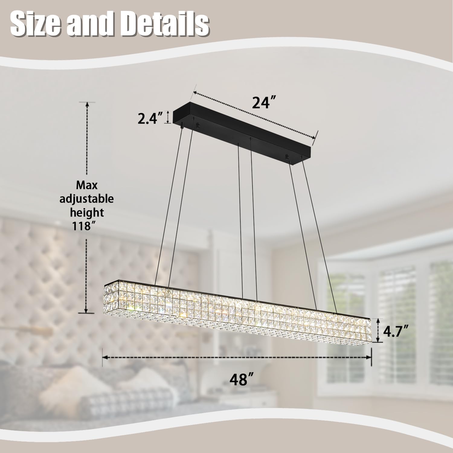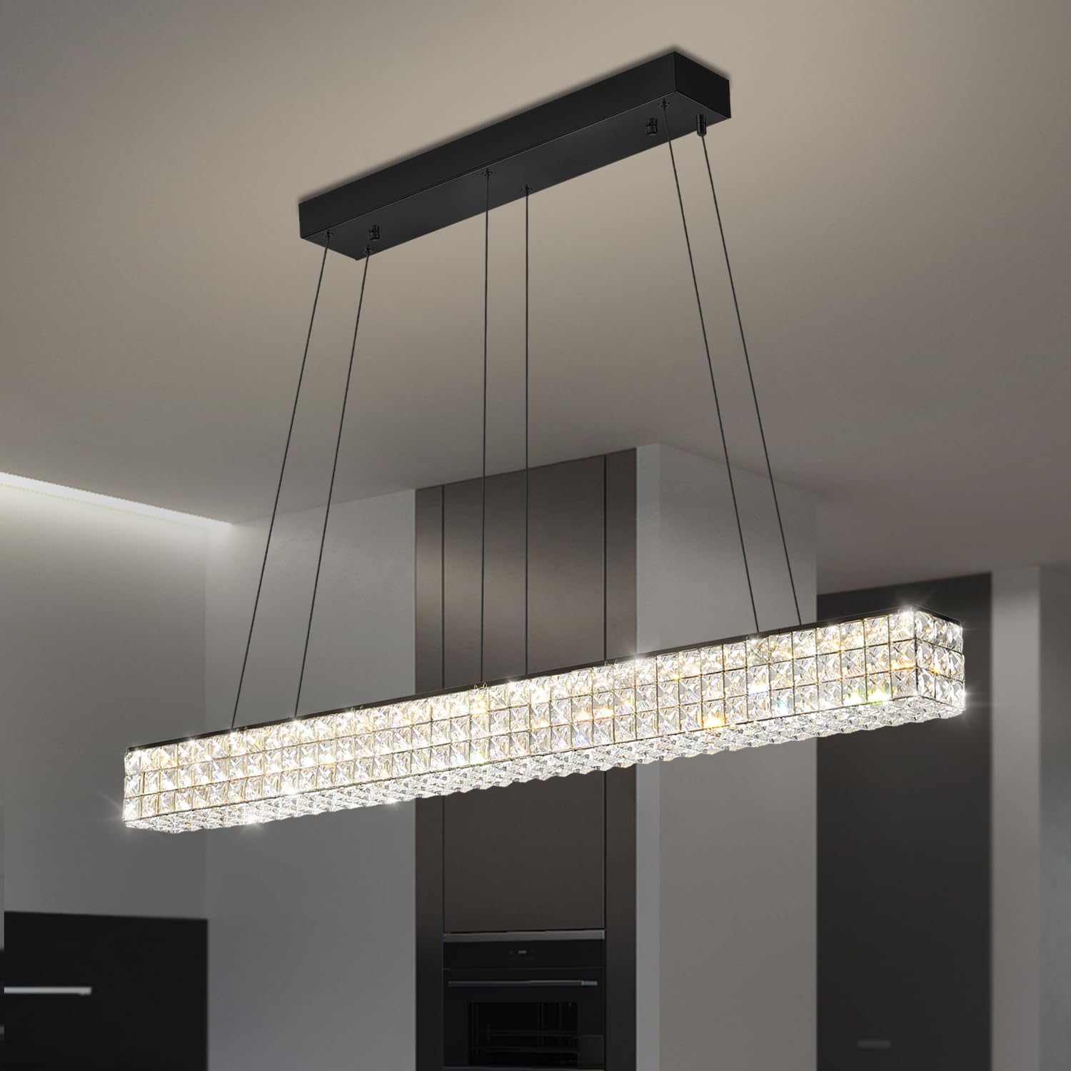 W48 Black Chandeliers for Dining Room, Modern Crystal Pendant Lights Fixture Farmhouse Hanging Dining Light Fixtures for Kitchen Island, Living Room, Bedroom