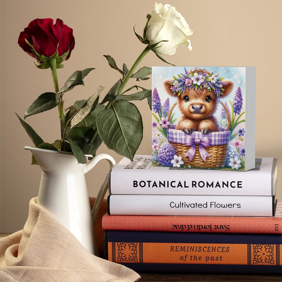 Highland Cow Hyacinth Flowers Decor, Highland Cow Bathroom Decor, Highland Cow Baby Decor, Highland Cow Nursery Decor, Wooden Box Decor Sign for Home Farmhouse Office Living Room Table Shelf Tiered
