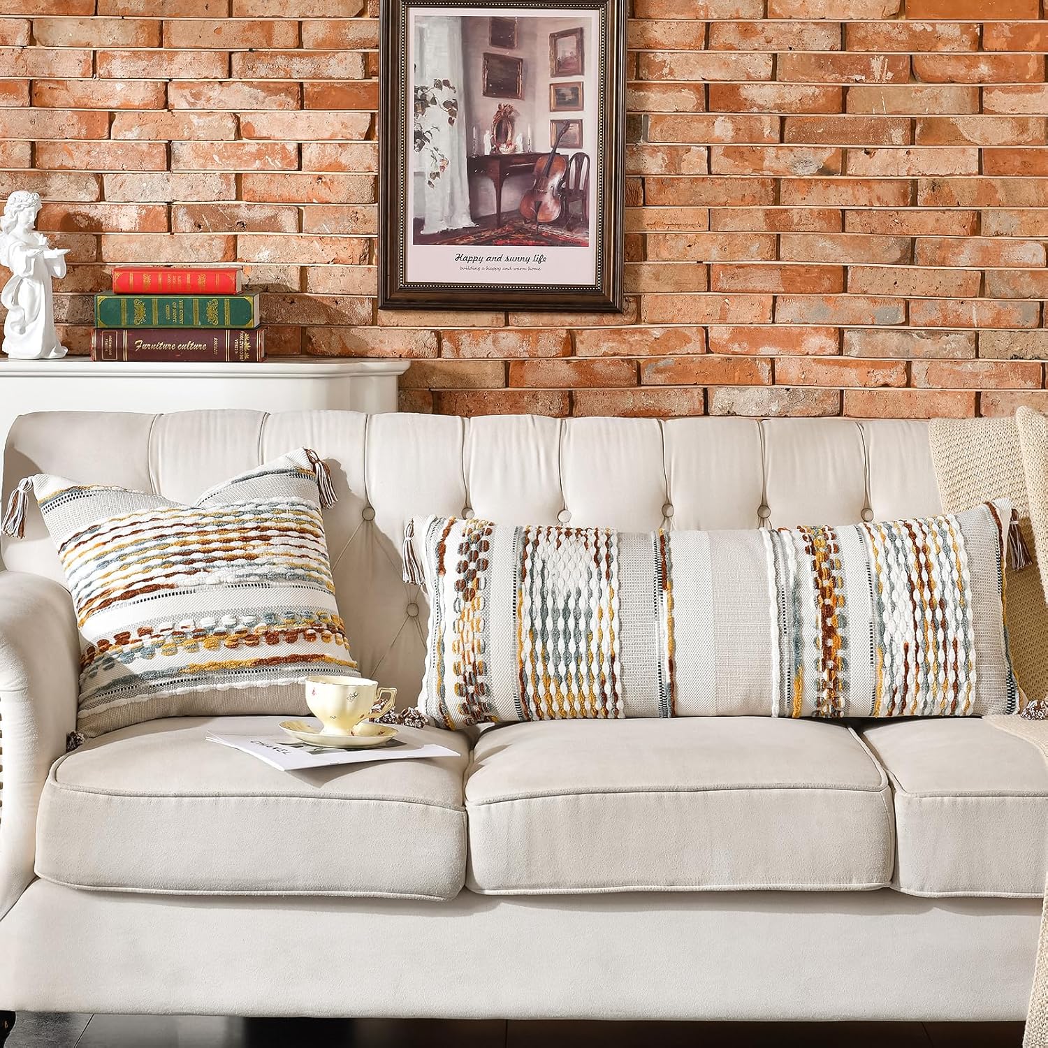 - 【Quality Material】Chenille&Cotton Surface,Thick linen Backing.Hand stitched and textured,so soft they feel great on your skin.These boho cushion covers are a delight to have on your comfy couch.