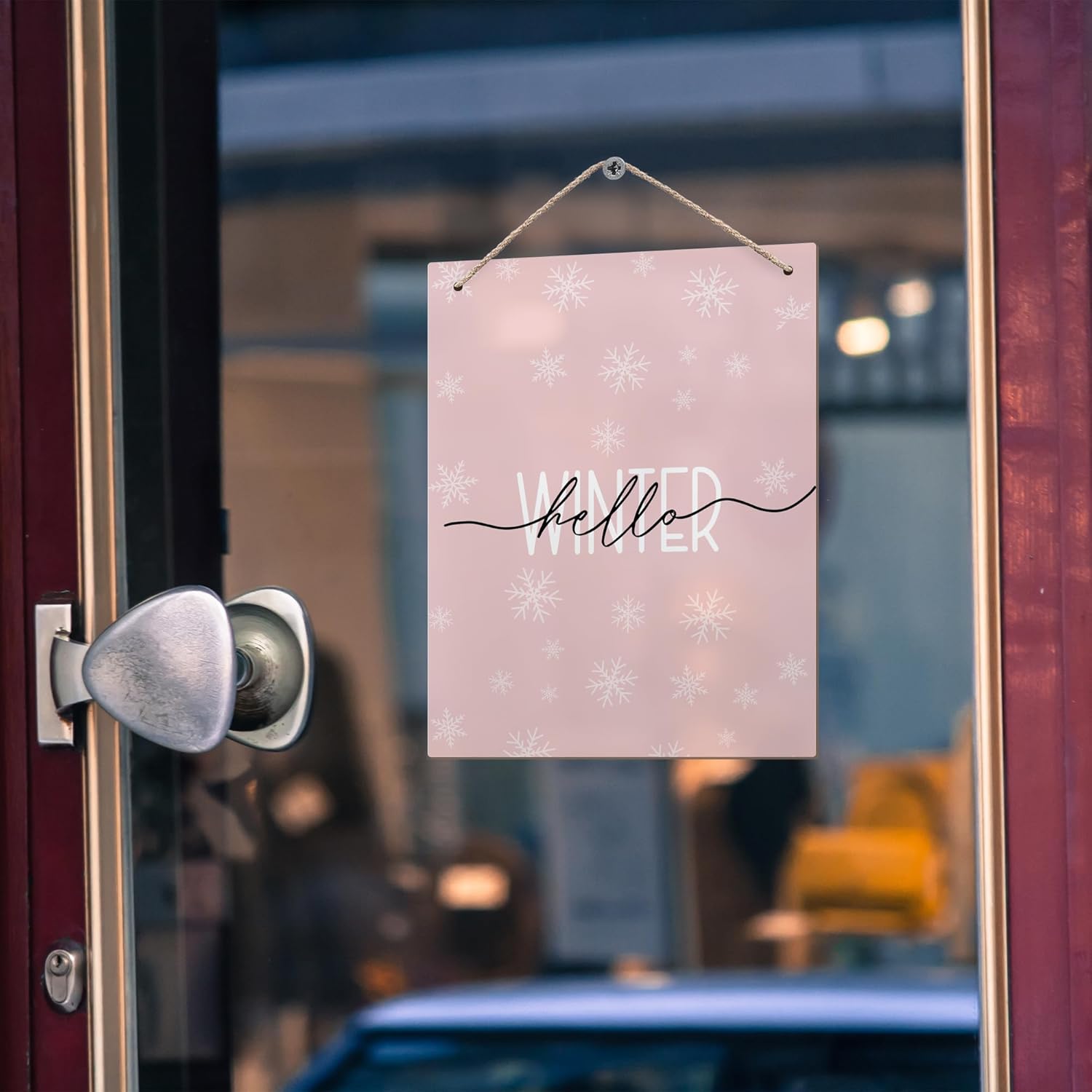 Pink Winter Snowflakes Wooden Sign, 10x8 inches, Rustic Wall Decor