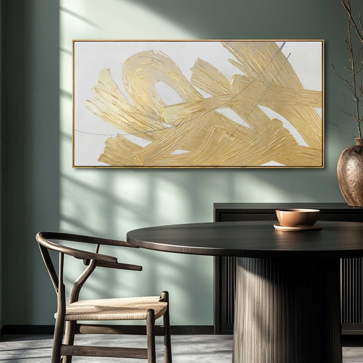Gold Framed Canvas Art Abstract Wall Decor White Picture Decor 24"x48" Canvas Wall Art for Bedroom Oil Painting for Kitchen